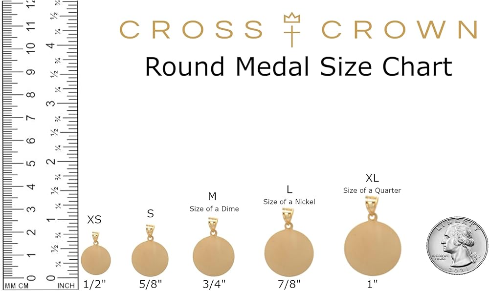 • الحجم والقياس: قلادة الميدالية الدينية هذه مستديرة 7/8 بوصة؛ 22 ملم؛ نفس حجم النيكل الأمريكي