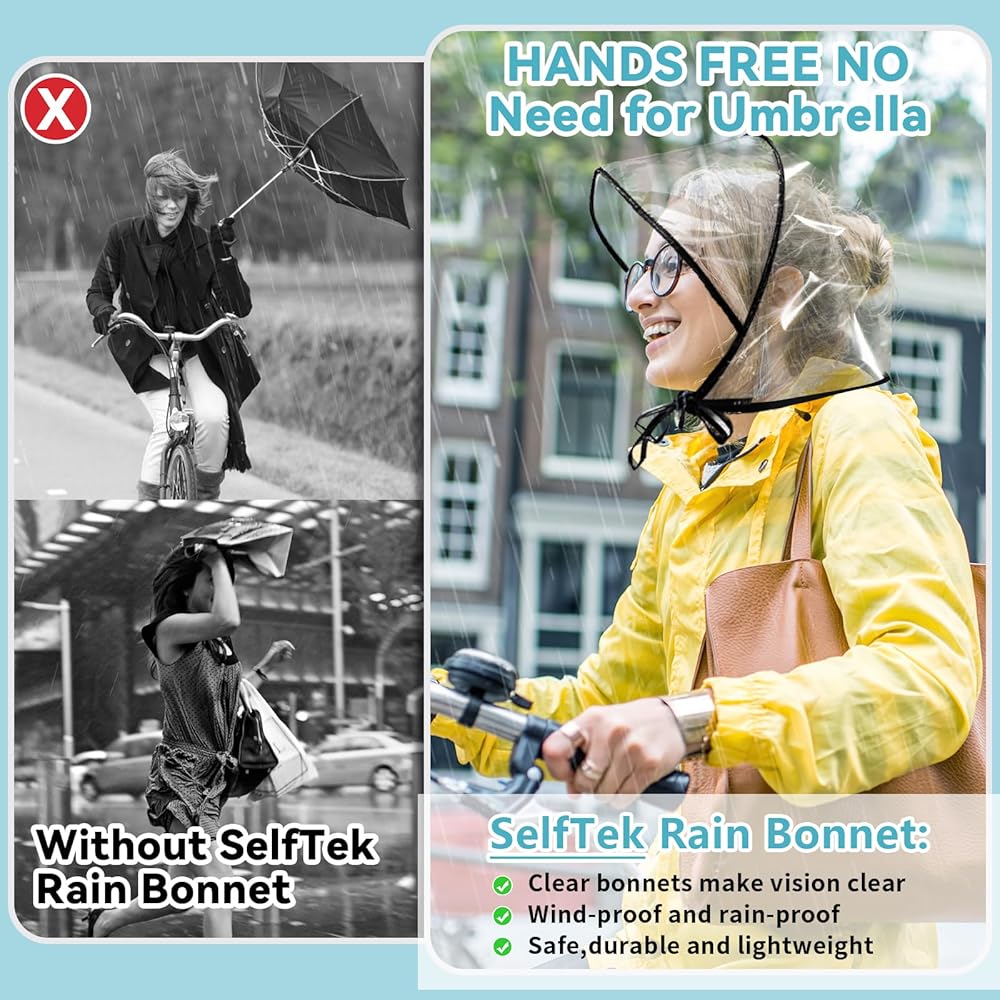 【حماية من الطقس السيئ】: كن مستعدًا لأي حالة طقس! سواء كان المطر أو الرياح أو الثلج أو الرذاذ أو الرطوبة، ببساطة قم بفردها ووضعها على قبعات المطر الخاصة بنا للحصول على حماية فورية للرأس والشعر والوجه. لا تدع الطقس السيئ يفسد يومك - ابقِ مستعدًا مع وشاح المطر النسائي المقاوم للماء