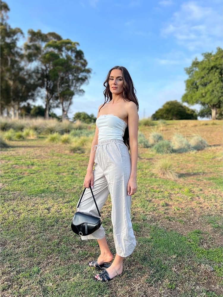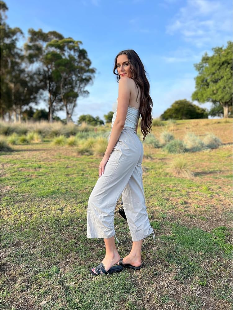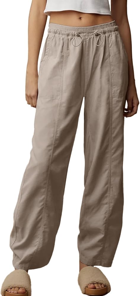 المميزات: سراويل كارجو للسيدات، سراويل مريحة، تصميم برباط، حزام خصر مرن برباط، تصميم ساق مستقيمة، مقاس فضفاض مريح، جيوب جانبية تجعل من السهل تخزين الأشياء الصغيرة، مثل المفاتيح والهاتف والمحفظة.