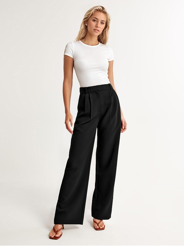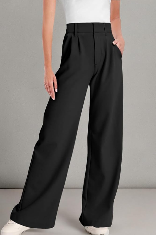 【المميزات】ملابس كاجوال للعمل، سراويل واسعة الساق، سراويل بالازو، تصميم عالي الخصر، جيوب خلفية وهمية، طراز فضفاض كاجوال، سراويل رسمية متوفرة في مجموعة متنوعة من الألوان لتختار من بينها