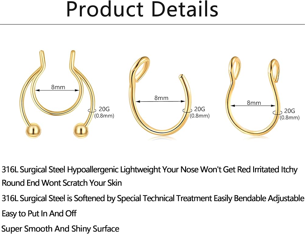 ⭐️ The ends of our fake nose ring are round after polished, so they won't scratch your skin