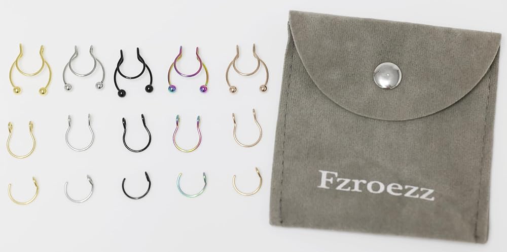 Fzroezz 15Pcs 20 Gauge Nose Rings Fake Nose Ring Fake Septum Nose Rings Nose Rings Hoops Nose Jewelry Fake Septum Piercing Nose Rings for Women Men Lip Rings Faux Nose Rings Fake Piercings Clip On Nose Ring Non Piercing Fake Nose Piercing Fake Septum Piercing