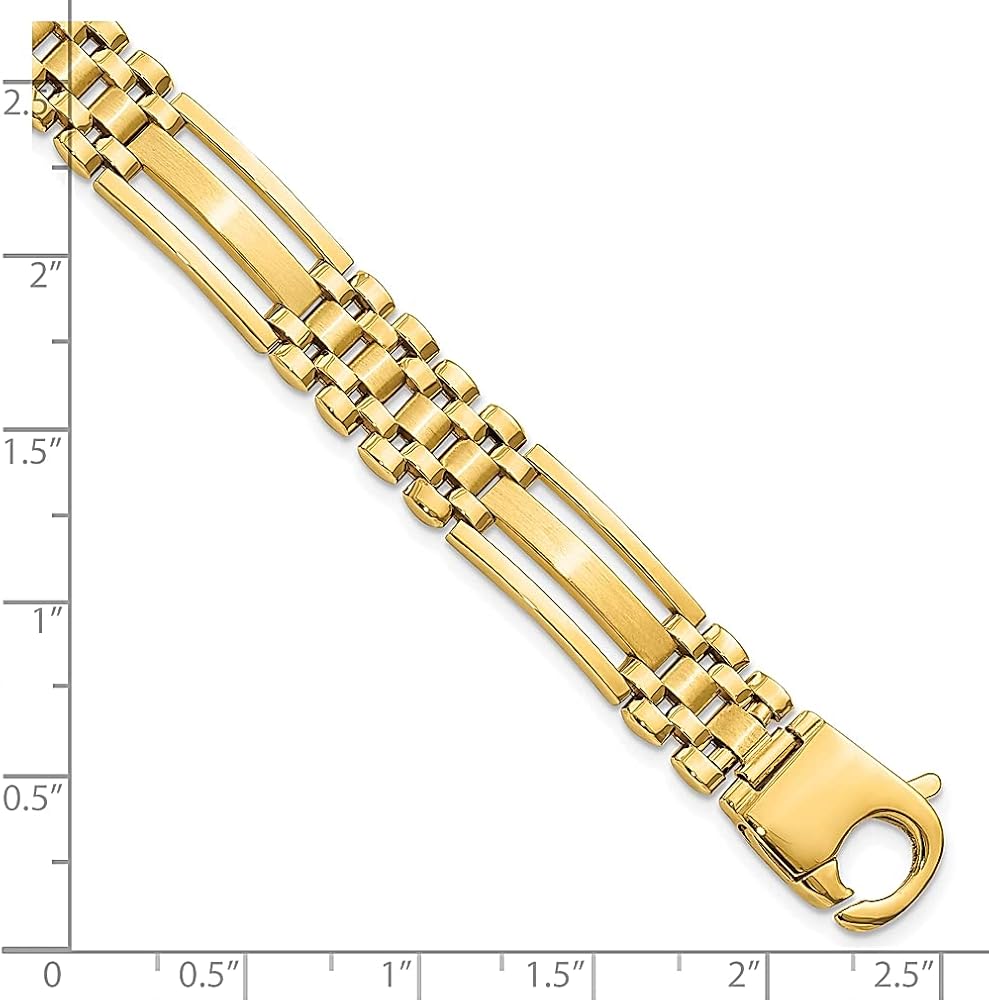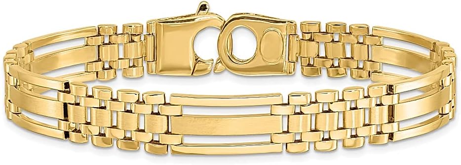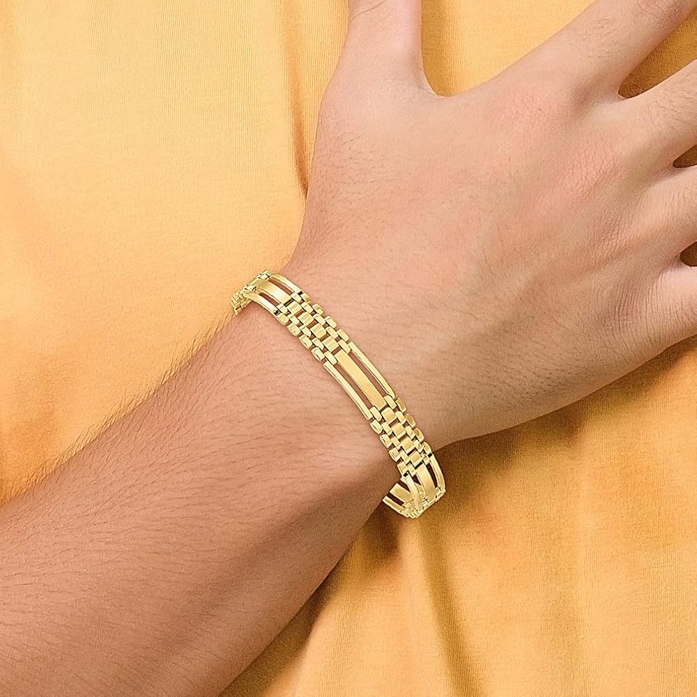 • HAPPY November 2023 Jewelry Deals Limited Supply Get It Now Before It's Sold Out; Solid 14 karat Yellow Gold ; Length 8.75in ; Width 10.1mm ; Hypoallergenic ; Gifts Jewelry Bracelets Fancy Link