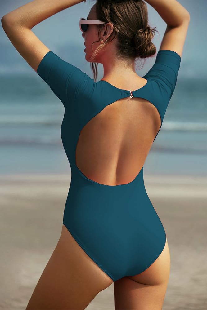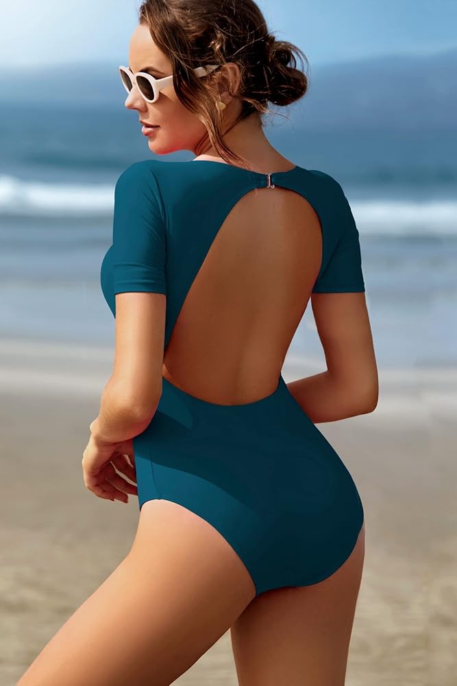 ❤️ بدلات استحمام كلاسيكية بأكمام قصيرة قطعة واحدة مع حمالة صدر مبطنة قابلة للإزالة، تصميم نحيف بتغطية كاملة يوفر تحكمًا رائعًا في البطن، ويعزز مظهرك ويظهر منحنياتك الساحرة بشكل مثالي.