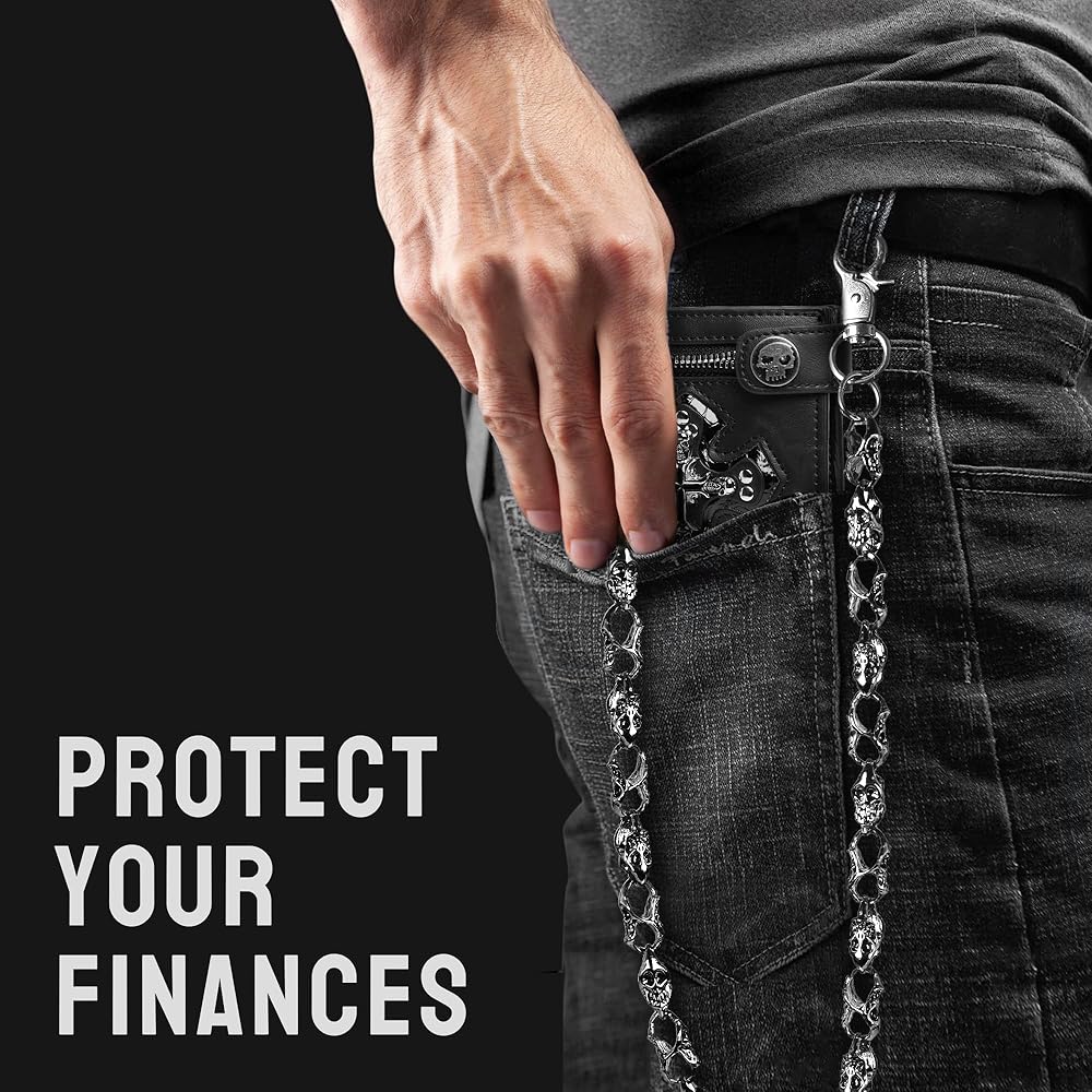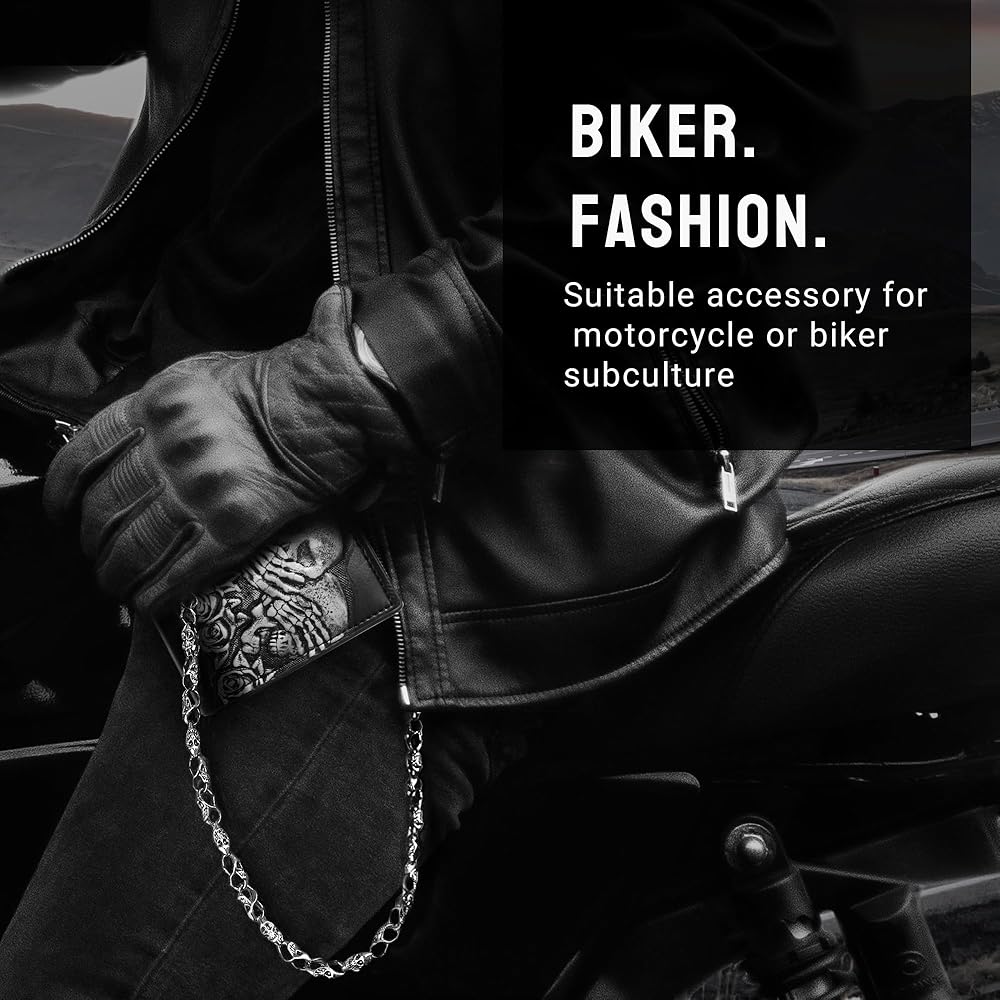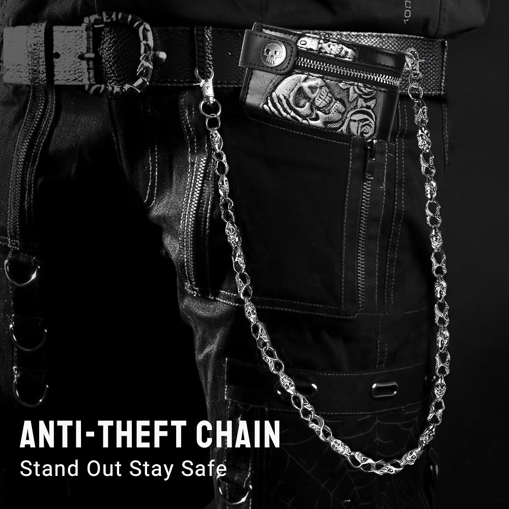 تصميم جمجمة أنيق - لفت الأنظار ببيان جريء - تتميز سلسلة المحفظة هذه بتصميم أنيق يتميز بزخارف جمجمة مذهلة لإضافة مثيرة لمجموعتك.