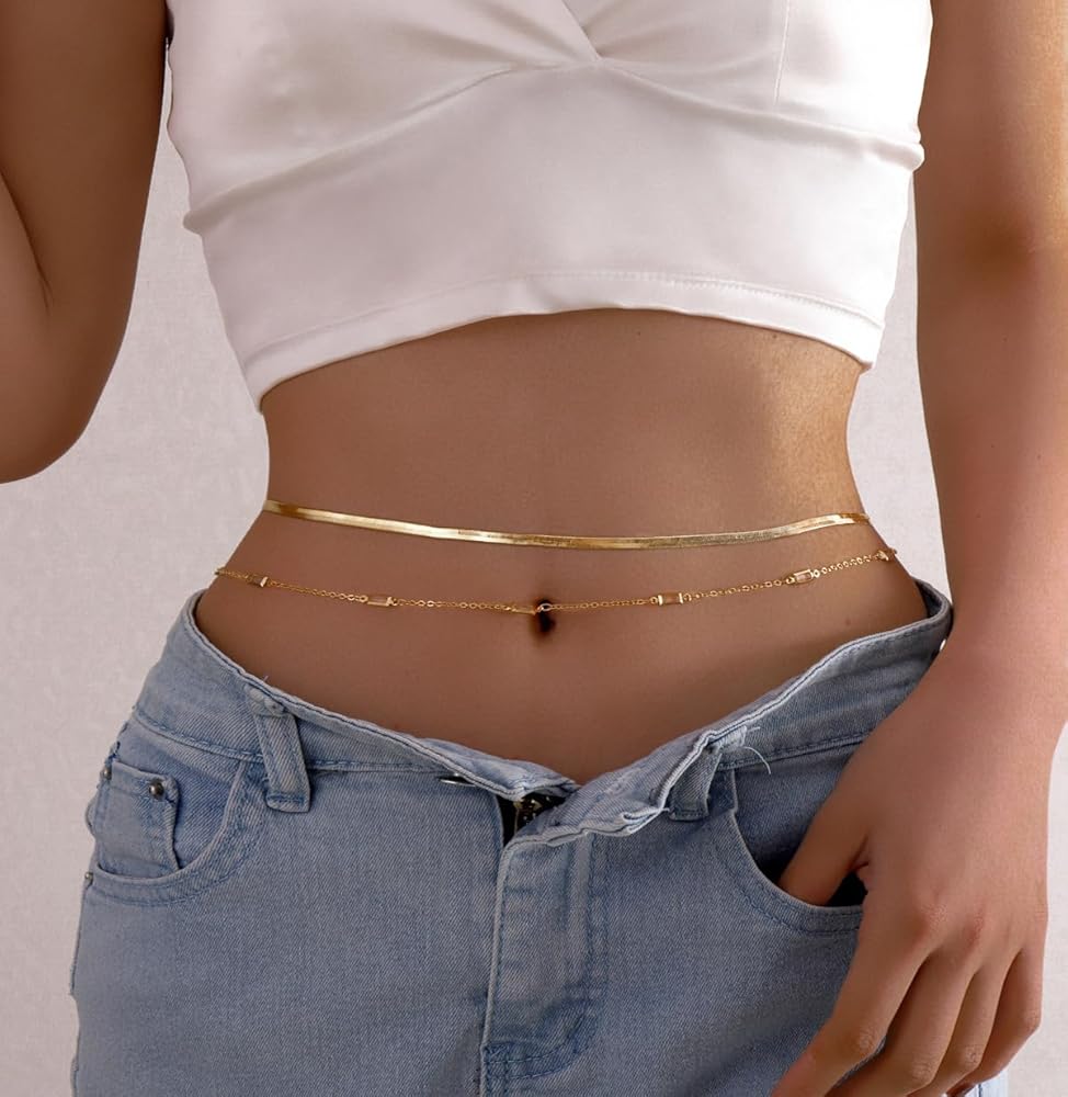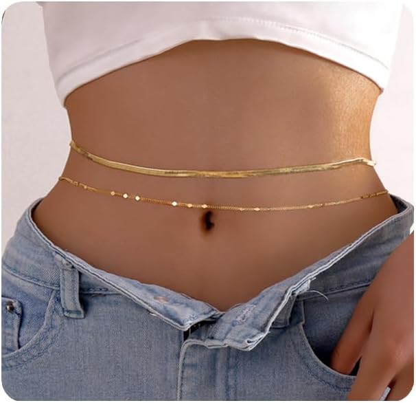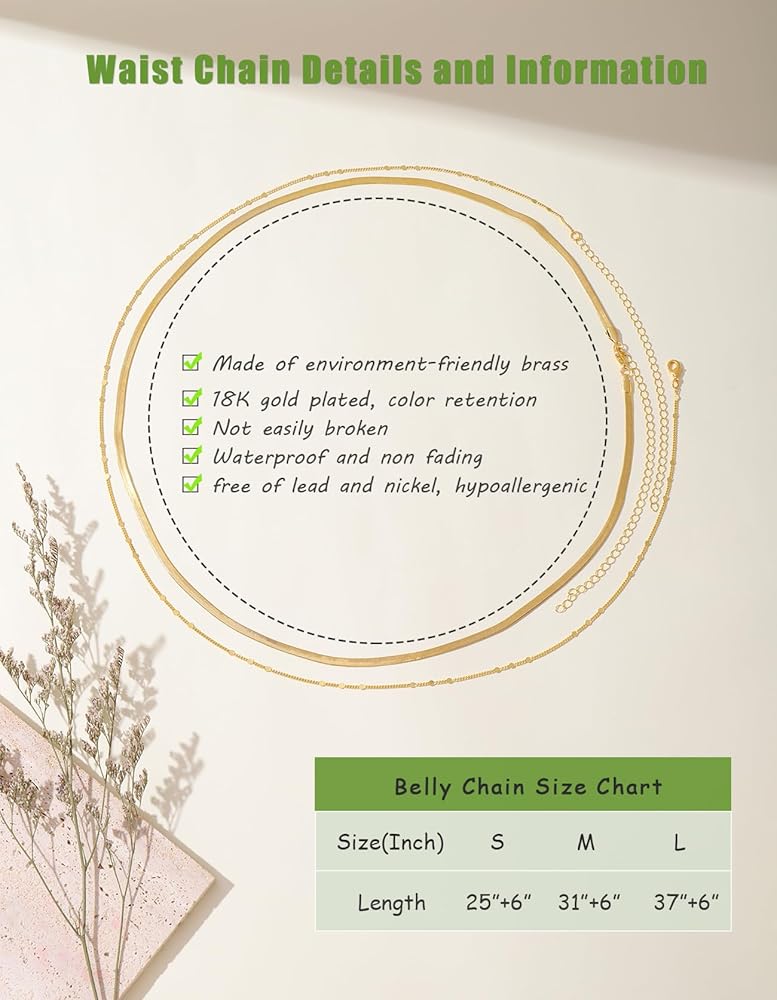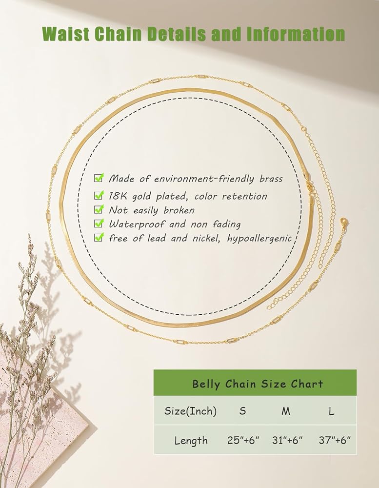 ✅[سلاسل جسم رائعة] ✅سلسلة الخصر ذات الطبقات مصنوعة من النحاس عالي الجودة، وهو أقوى وأكثر متانة من جميع المواد المصنوعة من السبائك؛ السطح مطلي بالذهب الحقيقي عيار 18 قيراط، متلألئ ويدوم طويلاً؛ لا ضرر على الجلد، هيبوالرجينيك. خالية من النيكل، خالية من الرصاص؛ خفيفة الوزن ومريحة في الارتداء.