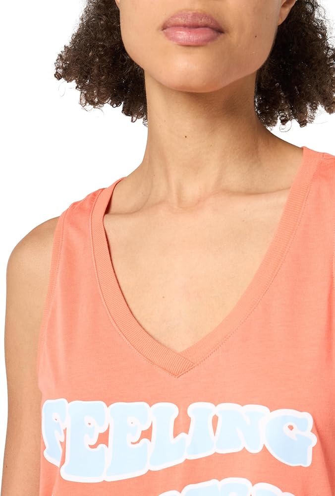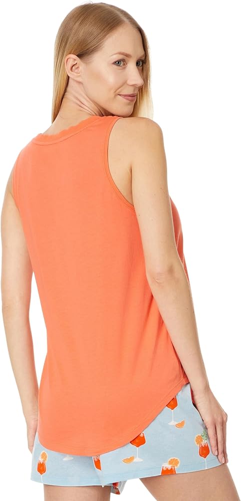 Fuchsia V-neck tank top with tropical flower print on cotton-modal jersey knit.