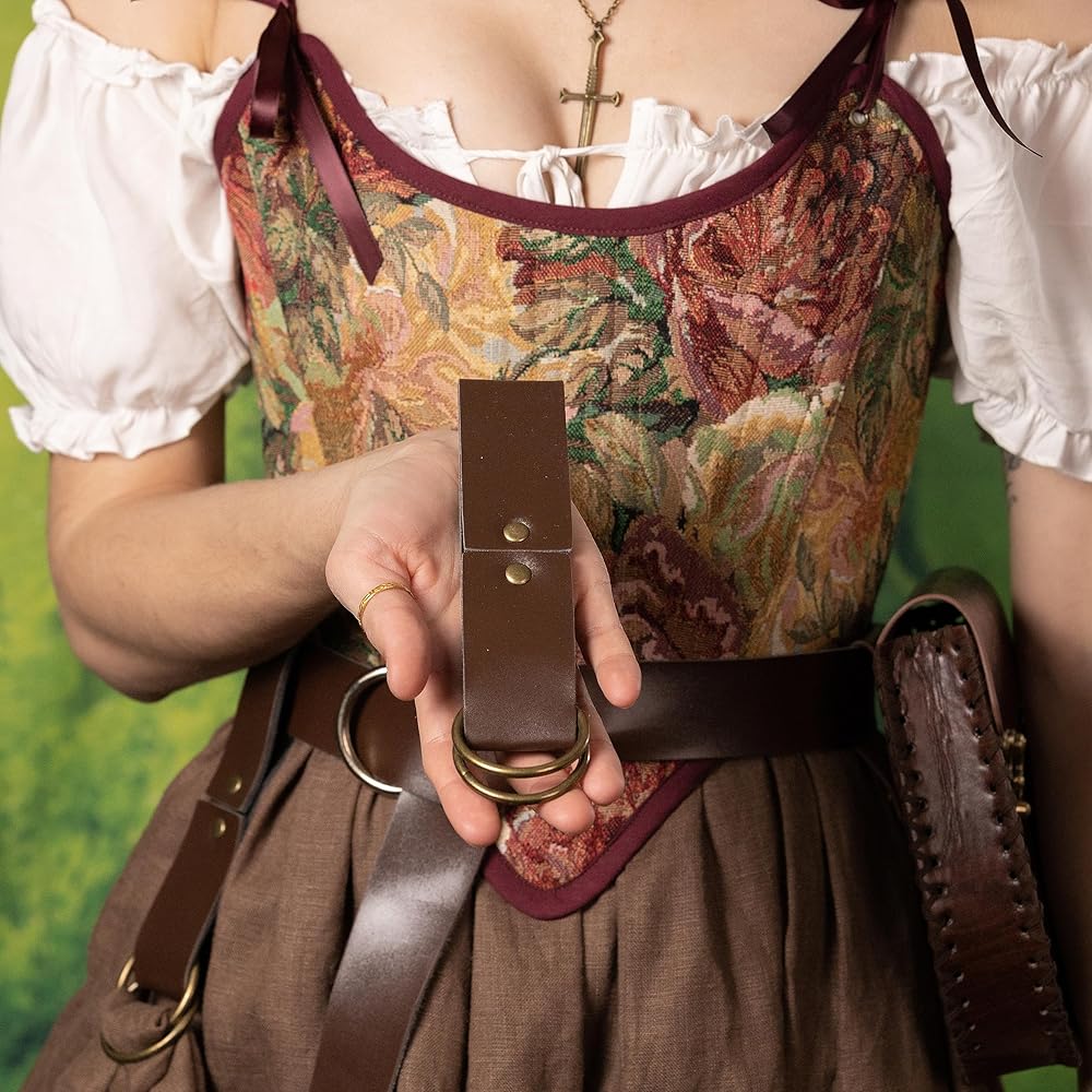 Add this skirt hike and Mug Holder to your belt to secur your tankard and get your renaissance skirt up and out of the way. Skirt Hikes create fullness with your dress or skirt, and show off the layers of your petticoat underneath. The Mug Holder secures your favorite tankard to your belt so you are ready for your favorite beverage. Made with 100% vegan leather and metal D-rings, this skirt hike and mug holder can fit onto belts up to 3″ wide. Perfect for adding to a belt on your renaissance faire, medieval, viking, cosplay, or LARP costume.