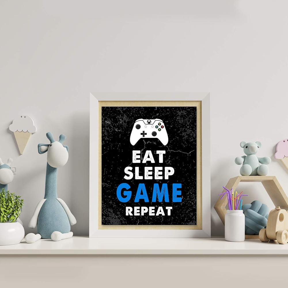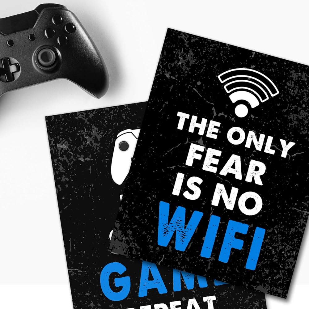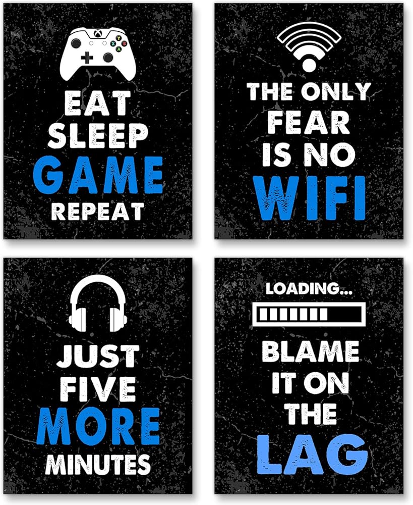 مجموعة ديكور ألعاب الفيديو مكونة من 4 قطع (8 × 10 بوصة)، ديكورات غرفة الأولاد لغرفة النوم، لوحة فنية جدارية للألعاب للأطفال الأولاد في غرفة اللعب، ديكور منزلي، لوحة فنية جدارية للاعب، غرفة نوم للمراهقين، غرفة ألعاب، بدون إطارات (أسود)