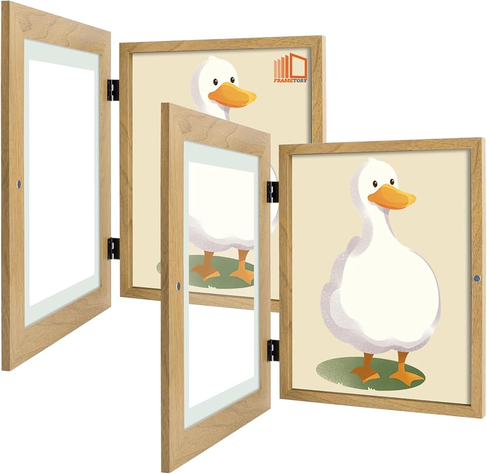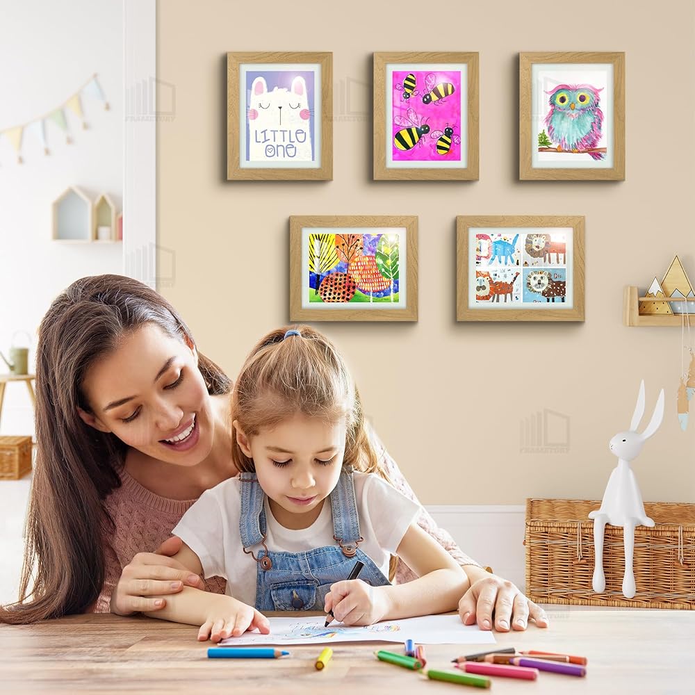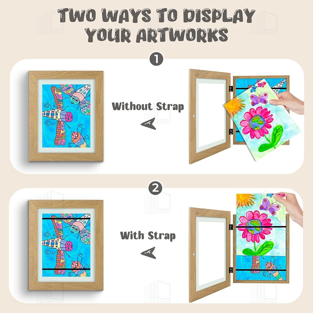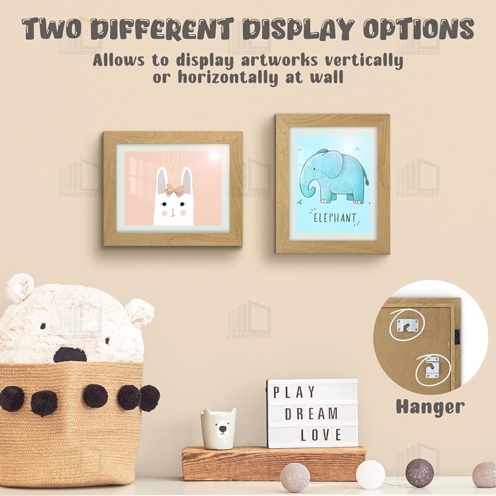 Frametory، إطارات عمل فنية للأطفال قابلة للتغيير، إطارات فنية للأطفال مقاس 8.5x11 تعرض فتحة أمامية للأطفال للمشاريع الفنية للأطفال والحرف المدرسية، معلقة على الحائط أفقيًا وعموديًا إكرو (عبوتان)