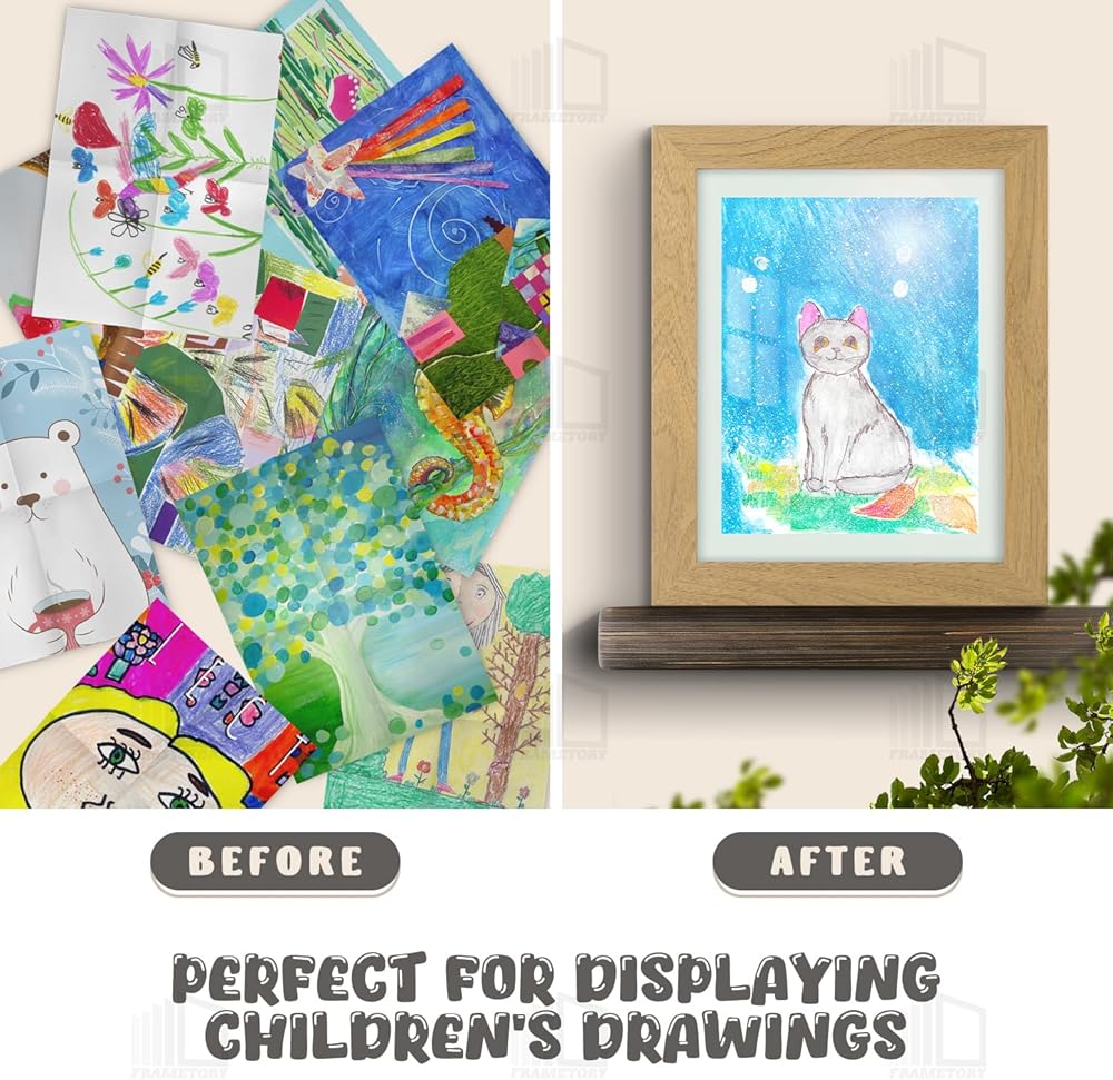 • 【مصممة من أجل السلامة】تم تصنيع الإطارات الفنية للأطفال بإطار MDF مع زجاج مقسى مقاوم للكسر خالٍ من الرصاص مما يعطي تقديرًا واضحًا لعملك الفني. تم اختبار الزجاج ليتحمل الكسر والتلف. الجزء الخلفي من الزجاج يزيل القطعة المعدنية، آمن وموثوق، لم يعد هناك حاجة للقلق بشأن إطار الصورة الذي سيؤذي يد الطفل.
