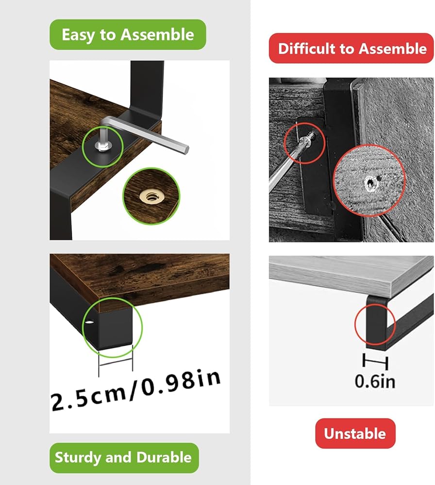 قوي ومتين: مصنوع من لوح جسيمات عالي الجودة وشديد التحمل ومدعوم بأرجل حديدية قوية، هذا الرف مصمم ليدوم طويلاً. يضمن الإطار الحديدي السميك ثباتًا ممتازًا ويمكنه تحمل الأحمال الثقيلة. يوفر لوح الجسيمات بسمك 0.6 بوصة سطحًا مسطحًا وناعمًا مقاومًا للتلف الناتج عن الماء وسهل التنظيف، مما يضمن المتانة وطول العمر.