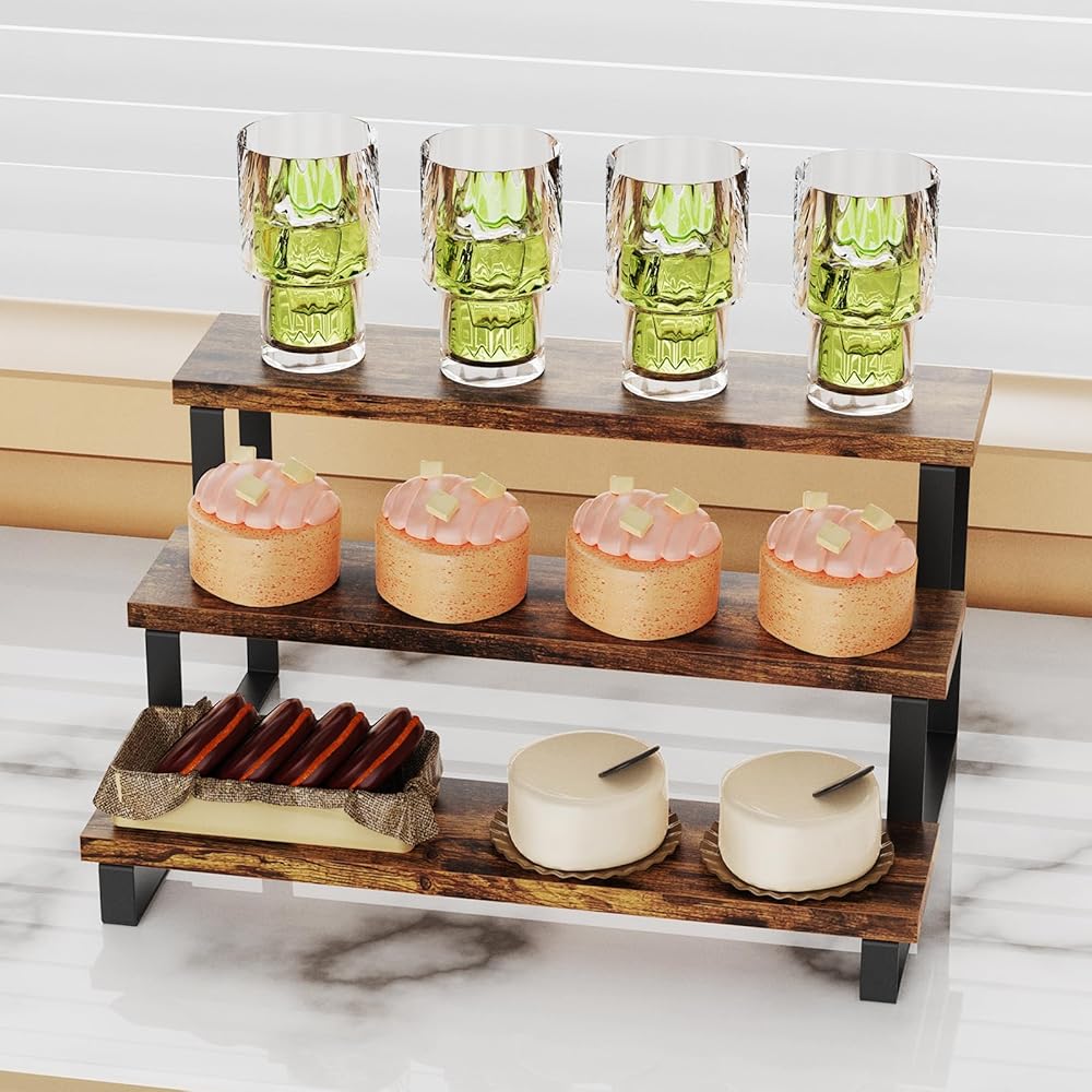 تصميم من 3 طبقات: بفضل تصميمه المتدرج الأعرض والأكثر سمكًا، يعمل حامل العرض هذا على زيادة مساحة الطاولة الخاصة بك بكفاءة. إنها مثالية لعرض تماثيل الألعاب في الخزانات أو عرض حلويات الحفلات أو تنظيم مستحضرات التجميل على خزانة ملابسك. تخلق الطبقات المرتفعة نقطة محورية جذابة بصريًا، وتلفت الانتباه إلى العناصر الخاصة بك وتعزز عرضها.