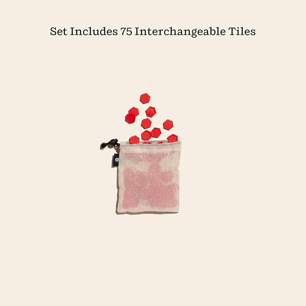 • مجموعة بلاط إضافية: تحتوي كل مجموعة على 75 بلاطة سداسية من السيليكون قابلة للتبديل مع أي حصيرة بلاط Letterfolk. لا تشتمل على سجادة البلاط