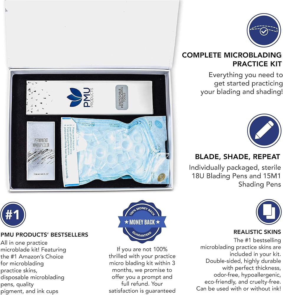 أفضل المبيعات من منتجات بي إم يو - كل ذلك في مجموعة ميكروبليد للتمرين الواحد! تتميز بخيار أمازون رقم 1 للتمرين على جلود الميكروبليدينغ، وأقلام ميكروبليدينغ التي تُستعمل لمرة واحدة، وصبغات عالية الجودة، وأكواب الحبر.