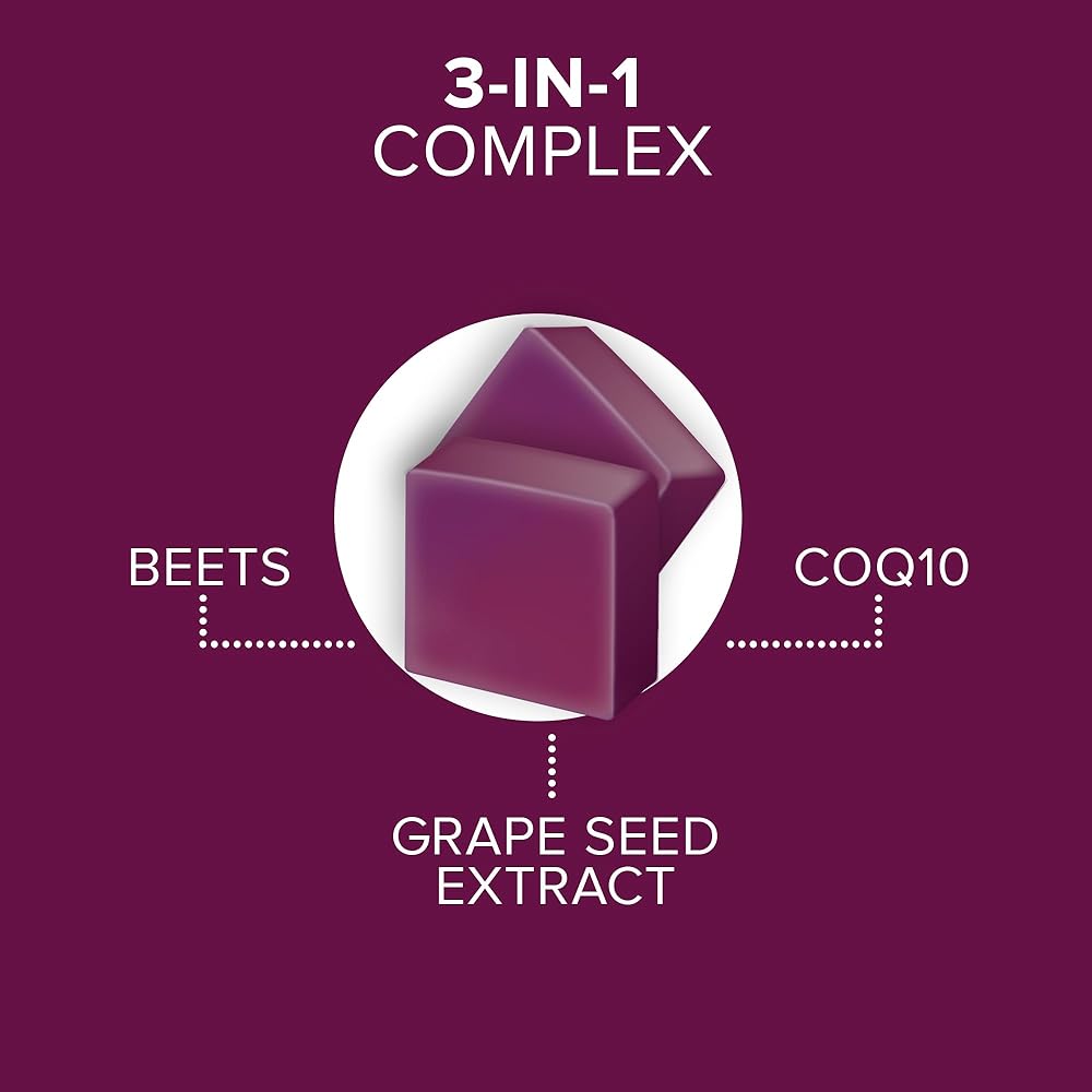 مضغ بنجر كونول لدعم ضغط الدم، 3 في 1 بنجر + مرافق الإنزيم المساعد Q10 + مستخلص بذور العنب، يدعم الدورة الدموية الصحية والطاقة الصحية للقلب، 60 مضغًا