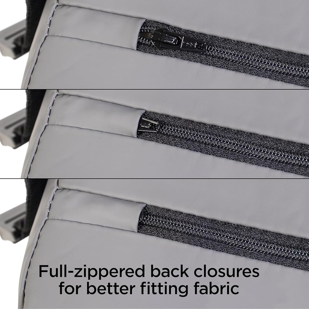 • Full-zippered back closures for better fitting fabric.