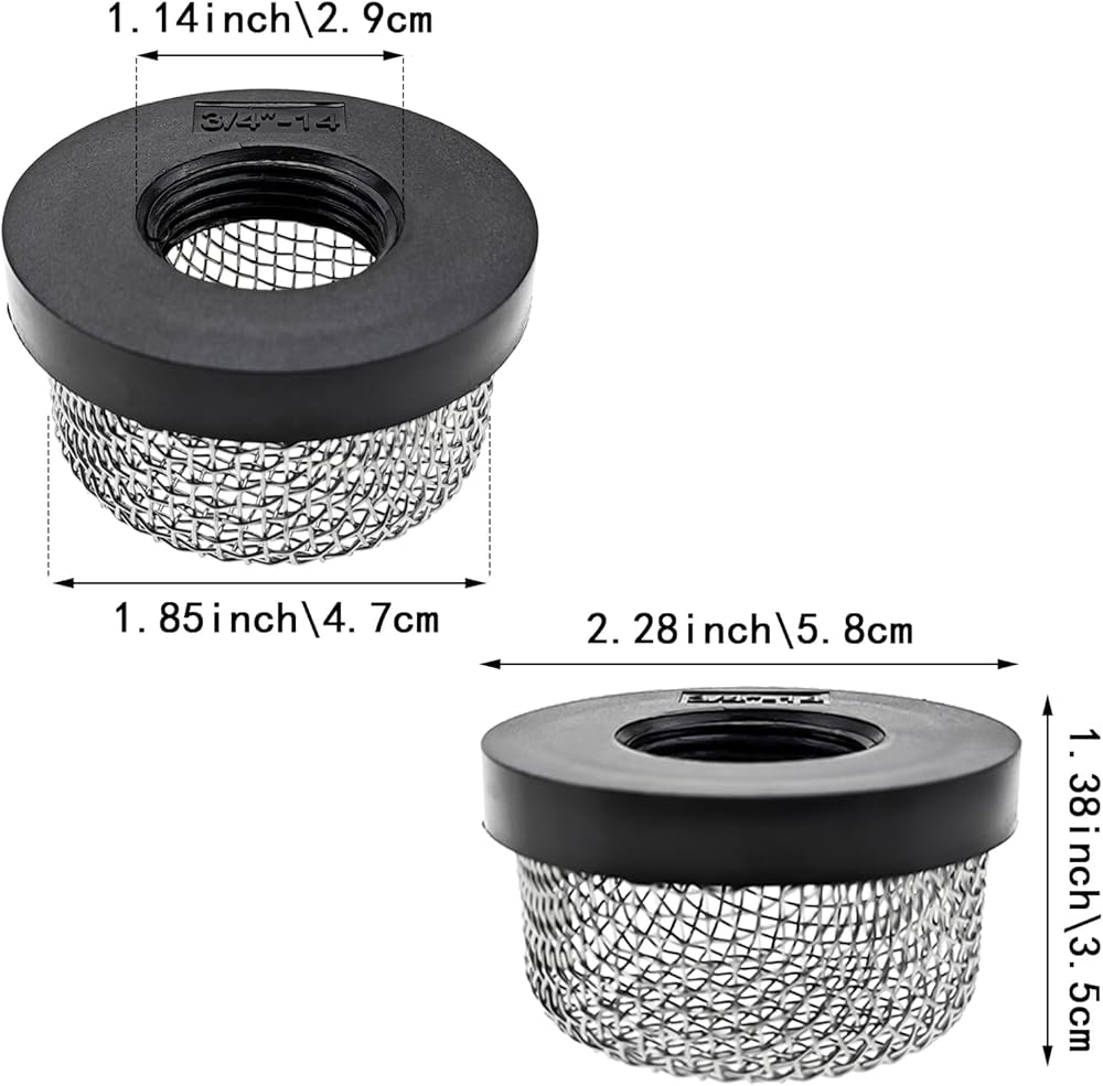 【FITS ¾ INCH - 14 FEMALE THREAD】- The stainless steel mesh strainer fits ¾ inch - 14 female thread, please consider this before purchasing.