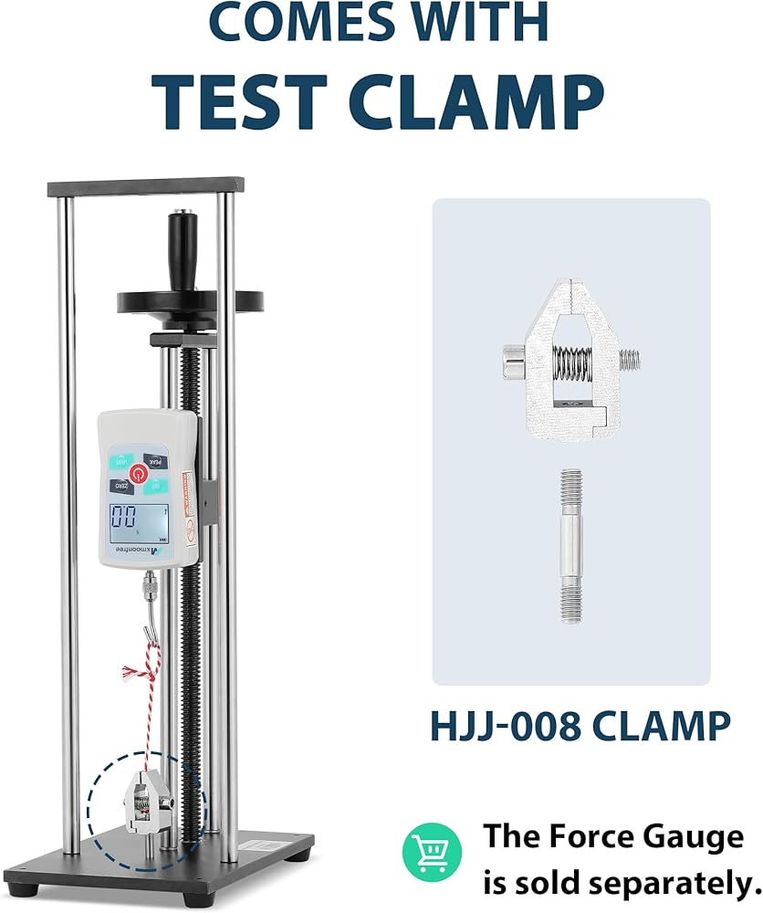 • يأتي مع مشبك واحد - يمكن تركيب المشابك بسعة تحميل 500 نيوتن على طرفي مقياس القوة وحامل لاختبار الشد، والاختبار المدمر، واختبارات التوصيل والفصل الأخرى.
