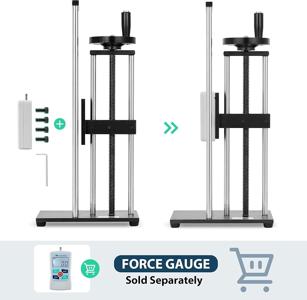 حامل قياس القوة، حامل اختبار القوة اليدوي، مقياس سحب الدفع، عجلة يدوية، بضربة 280 مم/11 بوصة، مشبك اختبار قطعة واحدة، حامل اختبار نموذج ESD (بدون مقياس القوة)
