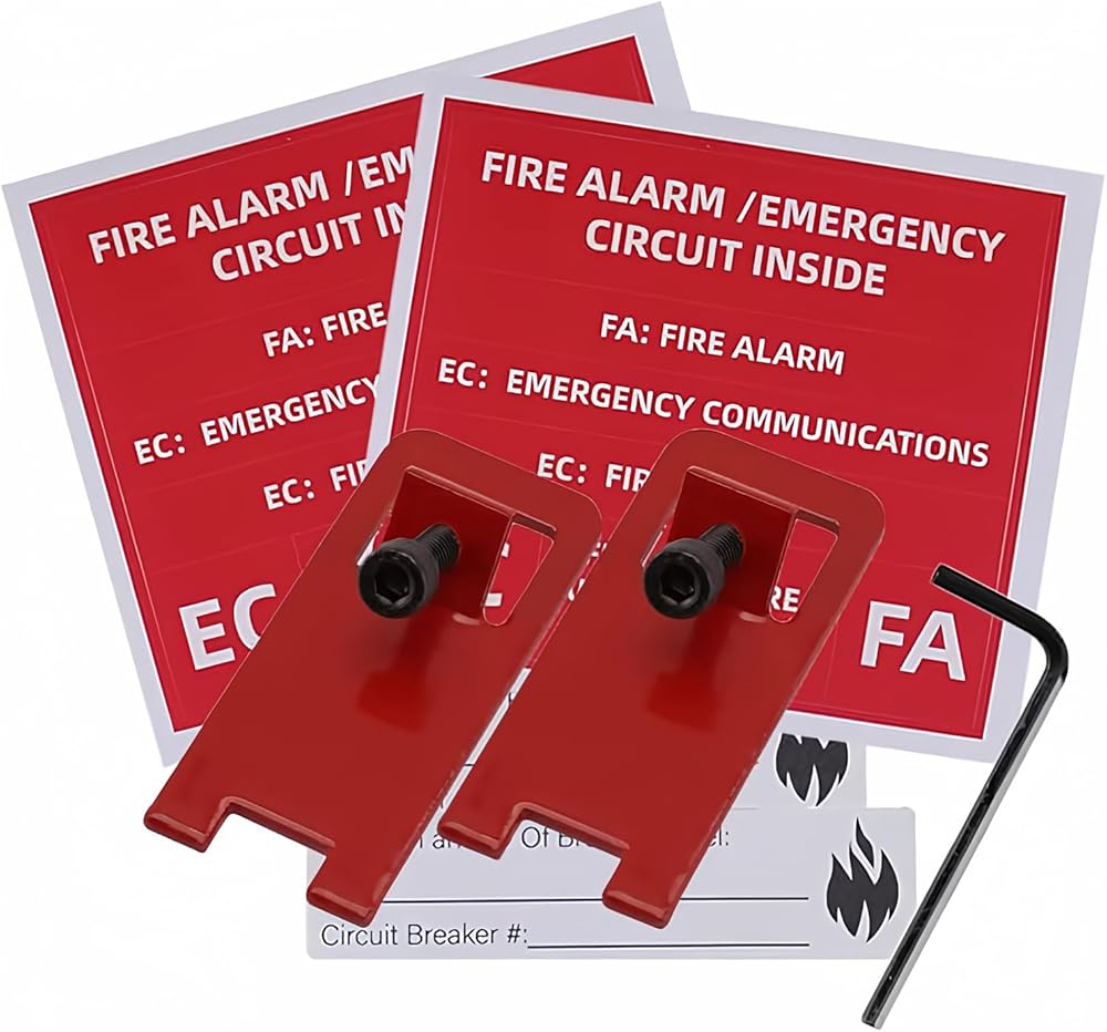 How does safety fire alarm lock works: 1.Install fire alarm lockout tab over breaker arm with the supplied 8-32 hex key. 2.Select and apply appropriate label next to breaker identifying “FA” or “EC”. 3.Apply the label to the index for the breaker panel identifying the appropriate branch circuit. Fire lockout application, work for fire alarm and emergency, label all fire locations appropriately. Tips: When the circuit breaker trips, the fire lock needs to be removed for operation. As long as you have questions, feel free to contact us!