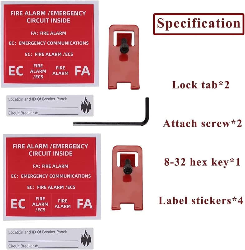 • [Specification] 10 sets red fire lockout kits. With lock tab*10, attach screw*10, label stickers*20 and 8-32 hex key in package. EC FA fire lock.