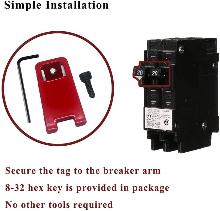 • [Easy to install] Secure the tag to the breaker arm using the 8-32 hex key provided. Make sure the fire lockout application with warning labels are securely fastened.