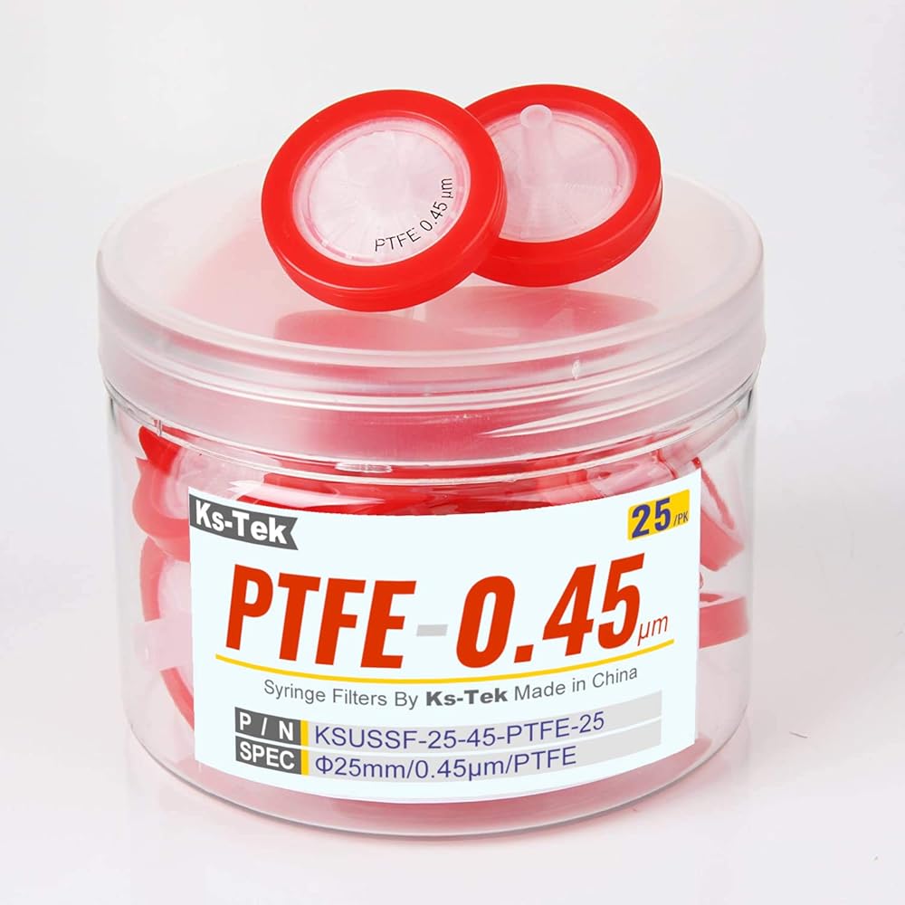 Hydrophobic PTFE syringe filters 25mm Diameter 0.22μm Pore Size For Industrial Filtration by KS-Tek Biotechnology (PACK OF 25)