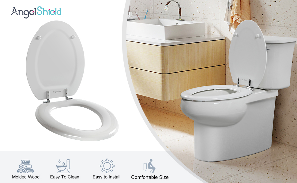 مقعد مرحاض أبيض طويل، مقعد مرحاض من الخشب الطبيعي مع مفصلات من سبائك الزنك، سهل التركيب، كما أنه سهل التنظيف، مقعد مرحاض مقاوم للخدش من أنجول شيولد (مطول، أبيض)