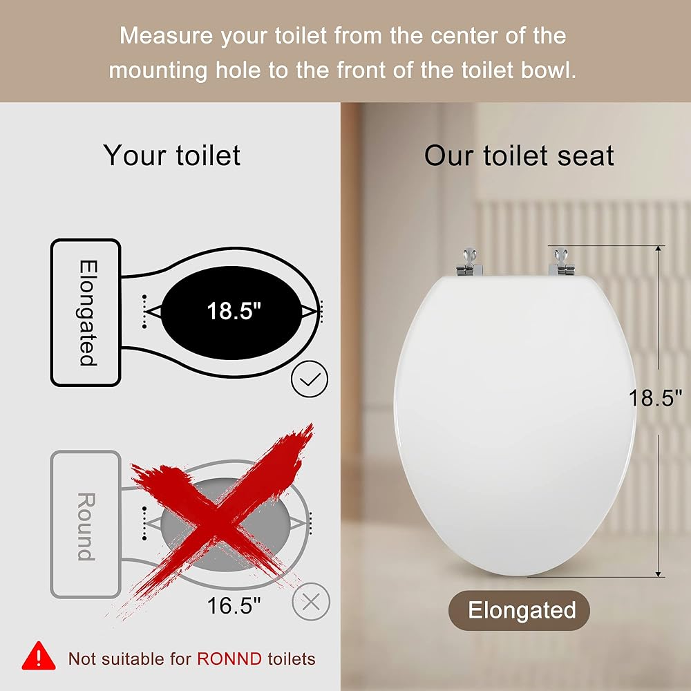 【مقاس طويل】إذا لم يكن المقاس متطابقًا، حتى إذا كنت تحب مقعد المرحاض الخاص بنا بشكل خاص، فسوف تكون غير راضٍ بالتأكيد. مقعد المرحاض 🚽ELONGATED🚽 الذي تشاهده مناسب فقط للمراحيض المطولة. يرجى قياس حجم المرحاض قبل الشراء للتأكد من ملاءمته. تناسب مقاعد المراحيض لدينا جميع العلامات التجارية الأمريكية للمراحيض بما في ذلك Crane وUniversal Rundle وEljer وDelta وBemis وCaroma وGerber ETC...