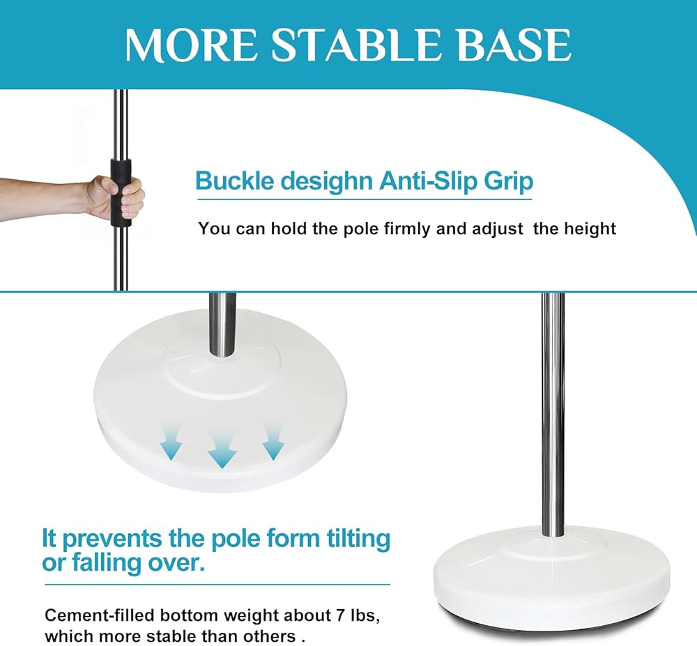 • عمود قابل للتعديل: يمكنك ضبط ارتفاع العمود من 44 بوصة إلى 77 بوصة، وسيقوم الخيط الداخلي بتثبيته في مكانه بشكل آمن.