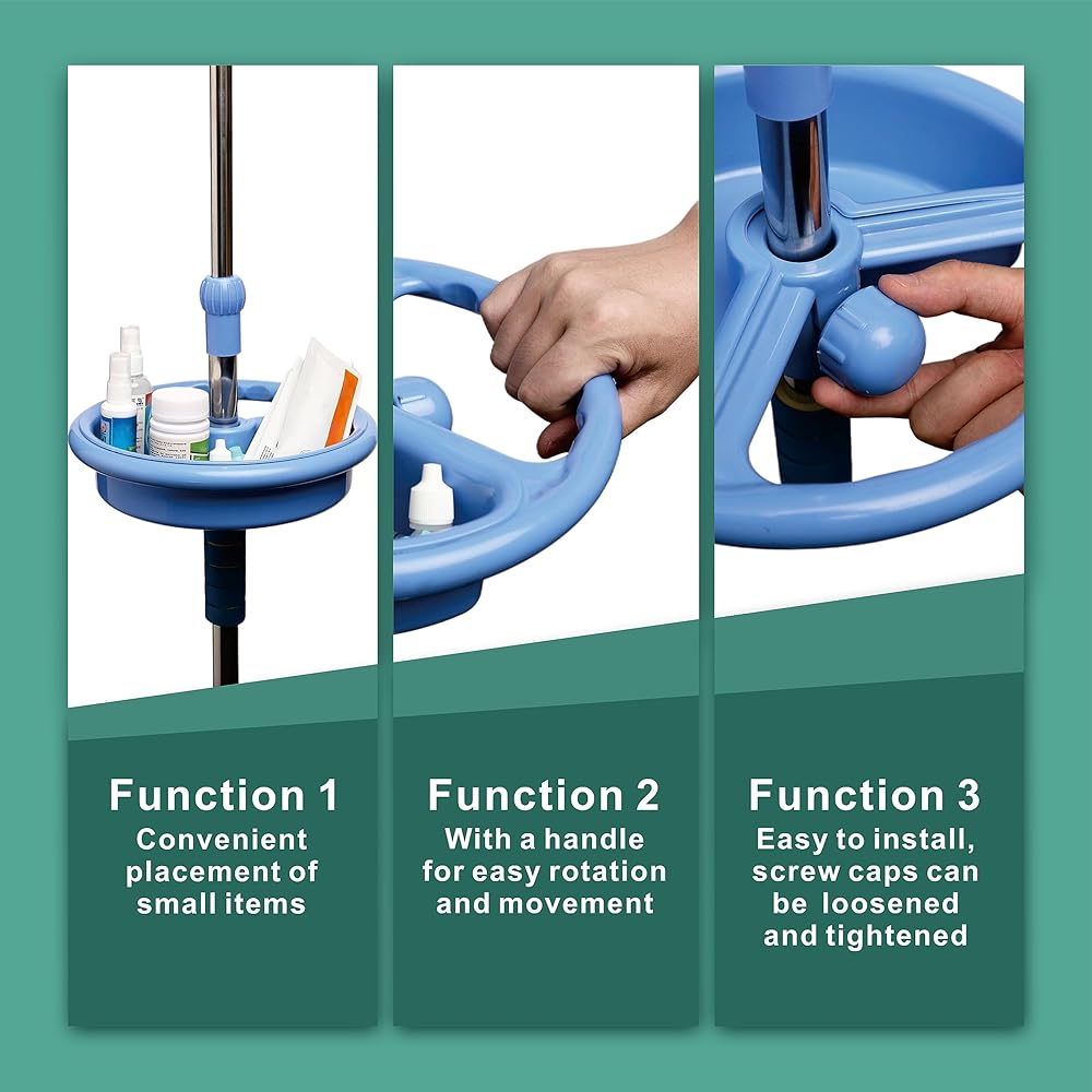 ◀ يمكن لصينية الأعمدة IV استيعاب الأشياء الصغيرة مثل الأدوية والإبر وأنابيب الحقن، مما يسهل الوصول إليها.