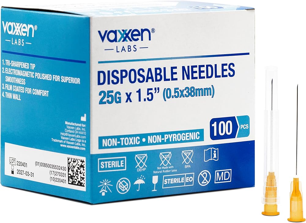 Vaxxen Labs Disposable 25G x 1.5" Luer Lock (Box of 100)