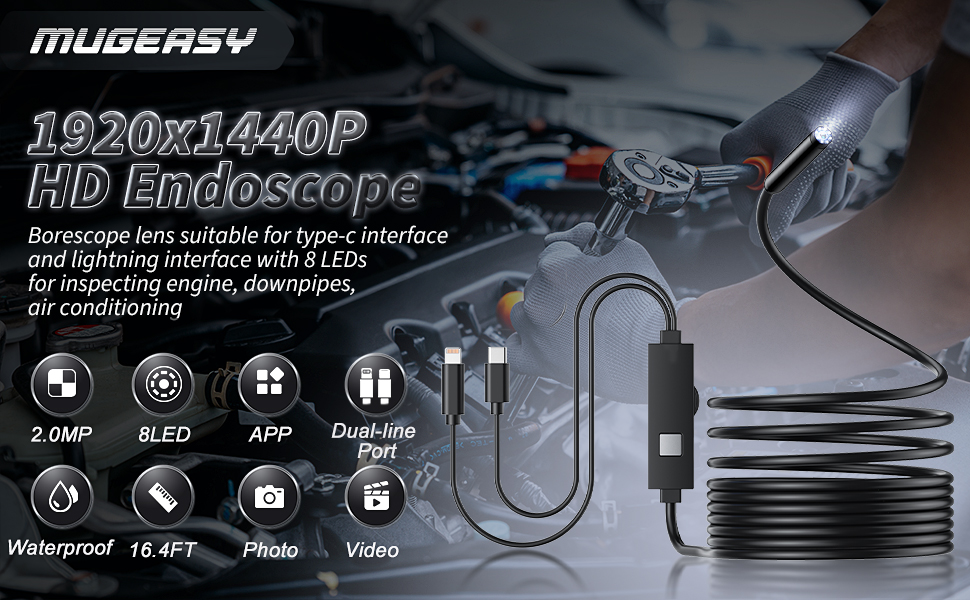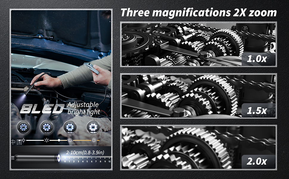 【كاميرا بدقة عالية الدقة】كاميرا فائقة الرؤية 2 مليون بيكسل، تركز على الصورة بدقة أكبر، وتوفر لك كاميرا الفحص البوريسكوب تجربة رائعة. تدعم دقة HD 1920x1440 تسجيل الصور والفيديو، وهي متوافقة تمامًا مع الهواتف.