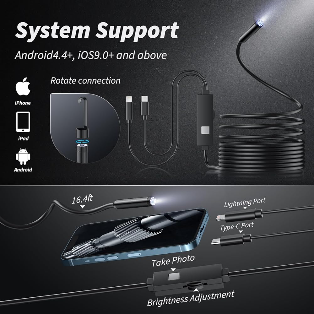 【نصيحة ودية】تحتاج فقط إلى تنزيل تطبيق على النحو الموصى به في التعليمات. نطاق التجويف هذا مخصص لأجهزة iPhone وAndroid وiPad. هذا مريح للغاية! نحن نقدم خدمة ما بعد البيع احترافية ولطيفة على مدار 24 ساعة. إذا كان لديك أي أسئلة، فلا تتردد في الحصول على المساعدة.