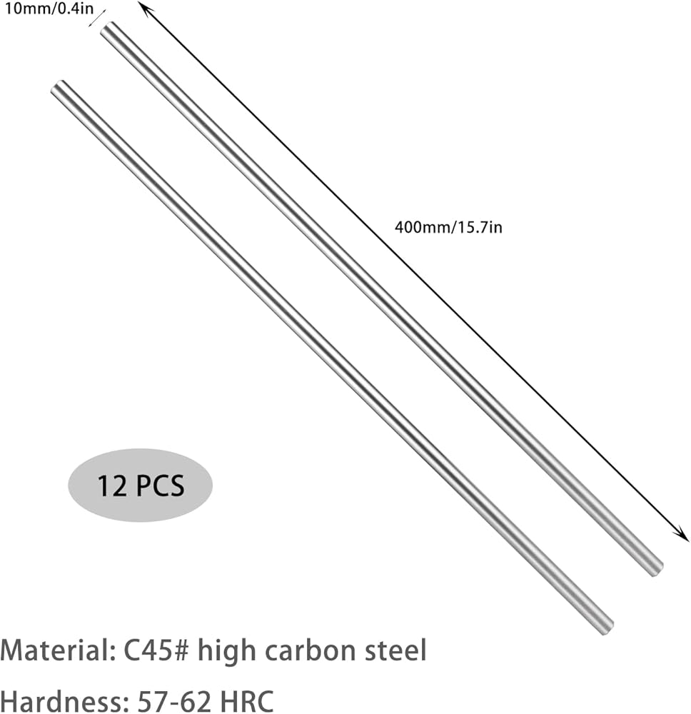 • WHAT YOU GET: 12PCS 10mm x 400mm Linear Motion Shaft. Taking the role as round steel shaft with linear support blocks and closed type slide units, suitable for high speed, low noise and high precision equipment.