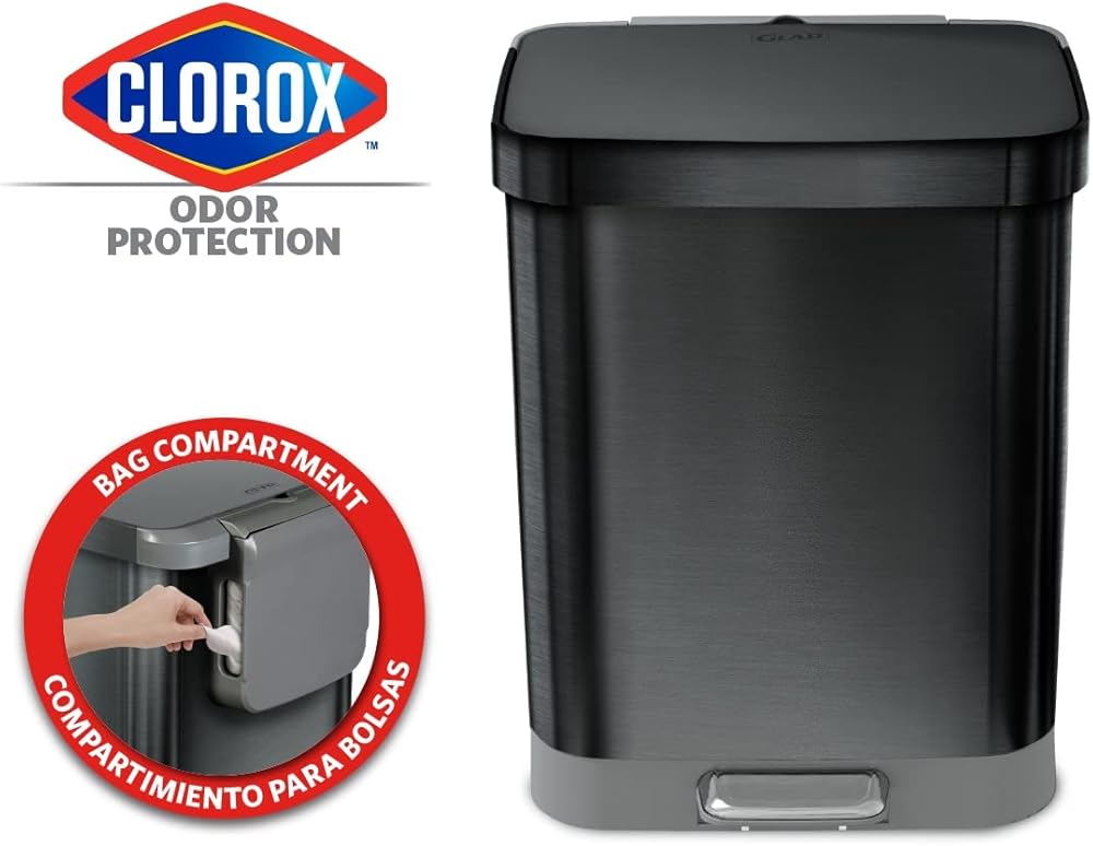 Glad 13 Gallon All Stainless Steel Step Trash Can with Clorox Odor Protection