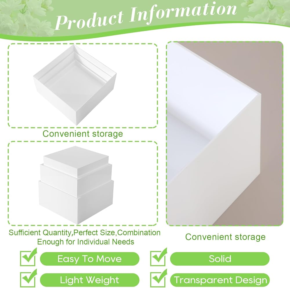 Multiple Uses: our acrylic display cubes are great for birthday parties, weddings, exhibitions, home, buffet food displays, plus you can flip them over and use them as storage bins or organizers, or for vendor booth displays and decorative shop displays and more
