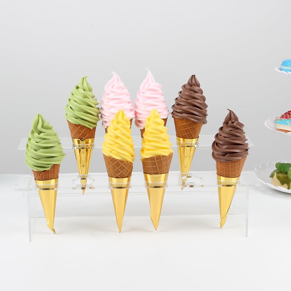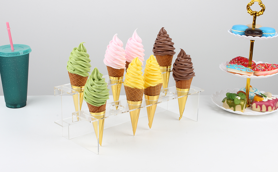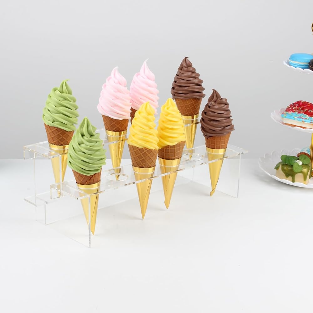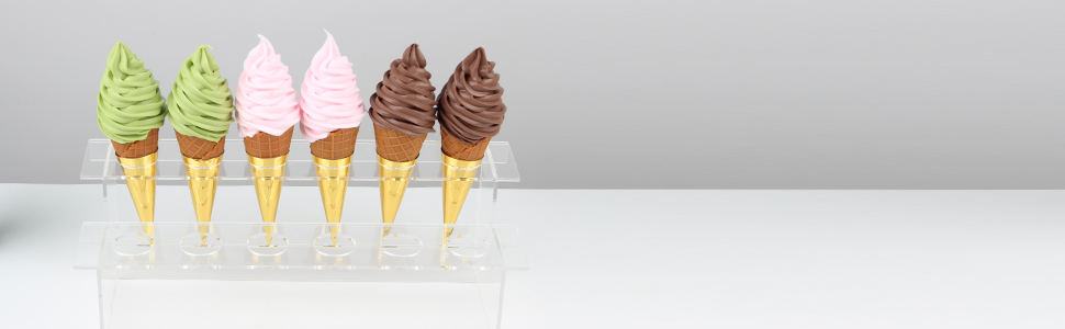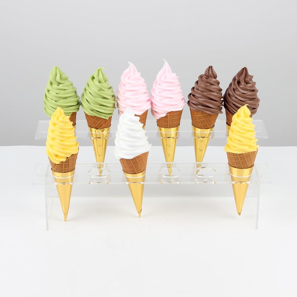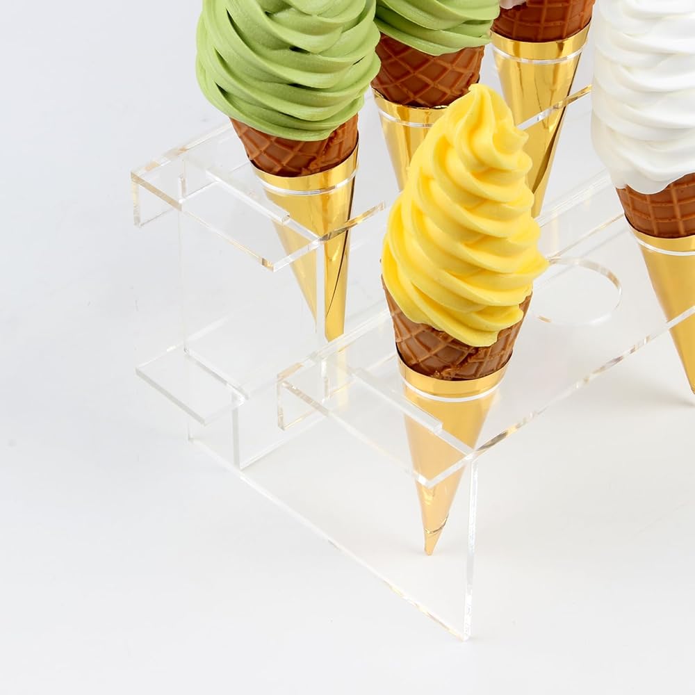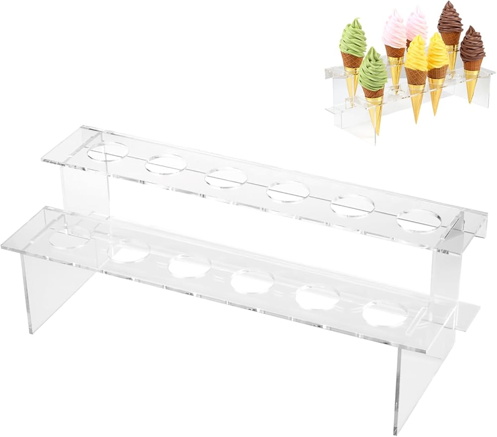 رف عرض ذو طبقات - سيسمح حامل الحامل المخروطي الأكريليكي المكون من طبقتين بعرض العناصر الخاصة بك بالكامل ولن يحجب بعضها البعض. يمكنها استيعاب ما يصل إلى 12 حاملًا لمخروط الثلج، ومخاريط ورقية للطعام، ومخاريط السكر، ولفائف السوشي اليدوية.