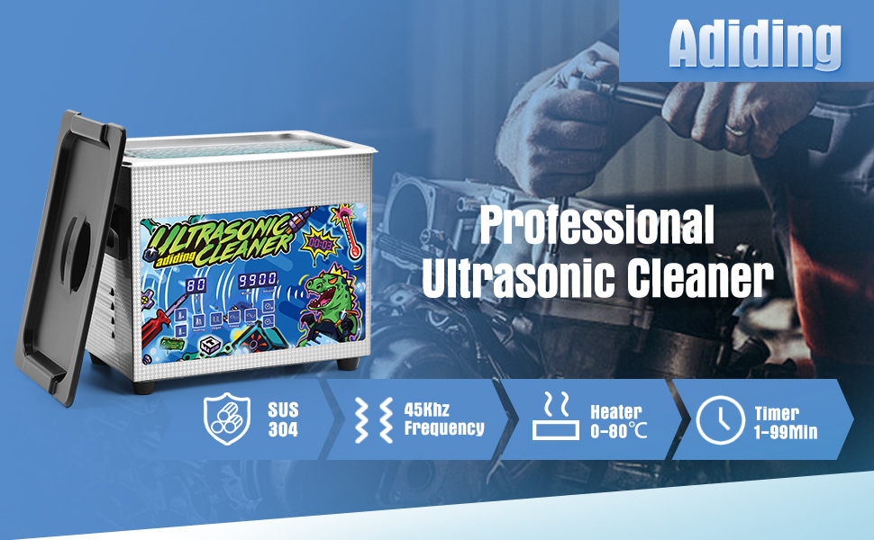 منظف ​​الأجزاء بالموجات فوق الصوتية من Adiding، منظف صوتي مطور بقدرة 120 واط مع سخان ومؤقت رقمي، آلة تنظيف مختبر منظف المجوهرات الاحترافية 45 كيلو هرتز مع سلة لعملات لوحة دوائر المكربن، 3 لتر