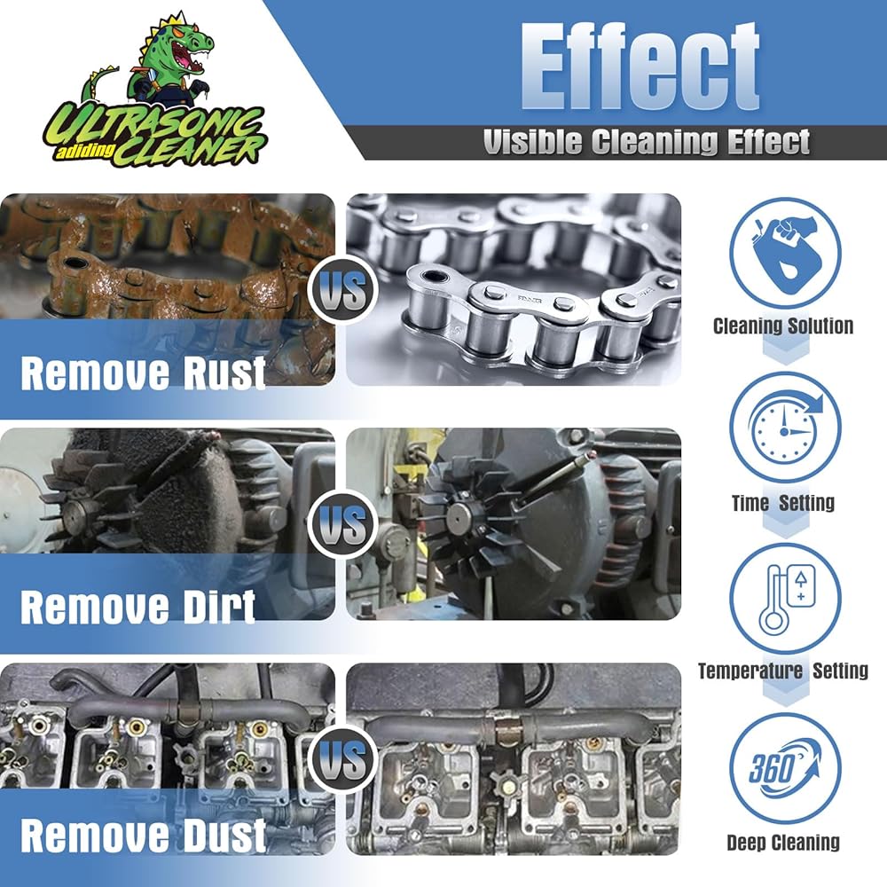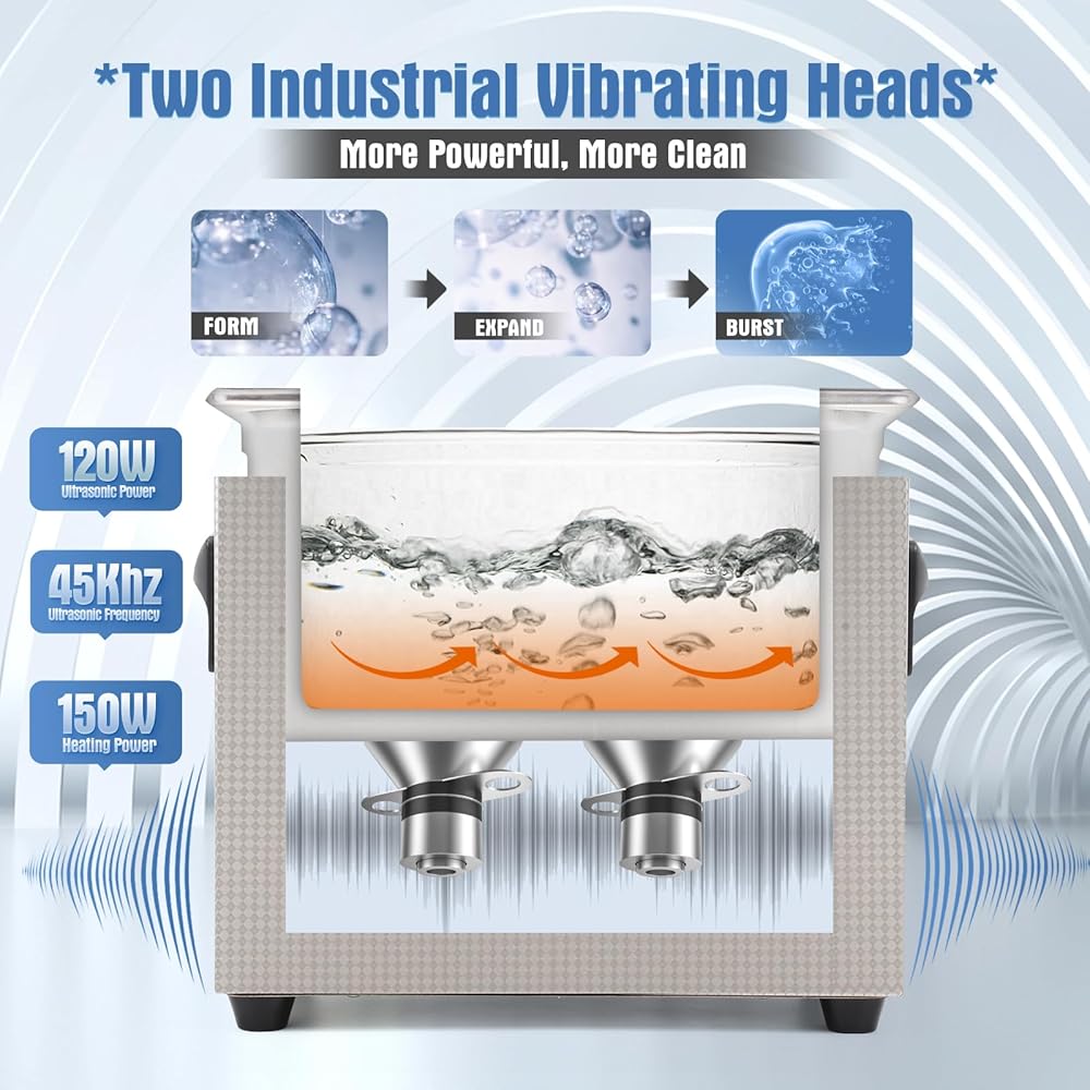 • تنظيف فعال: منظف الأجزاء بالموجات فوق الصوتية الساخن مجهز بمحولين بالموجات فوق الصوتية من الدرجة الصناعية (2 × 60 وات = 120 وات)، مما يضمن نتائج تنظيف شاملة وفعالة. قوة التسخين 150 واط. التردد الأنظف هو 45 كيلو هرتز. تولد تقنية الموجات فوق الصوتية فقاعات واهتزازات صغيرة تتغلغل بعمق في شقوق العناصر التي يتم تنظيفها، وتتخلص من الأوساخ والأوساخ بسهولة. يُقترح إضافة محلول التنظيف عند استخدام آلة التنظيف بالموجات فوق الصوتية في المعمل لتحسين تأثير التنظيف.