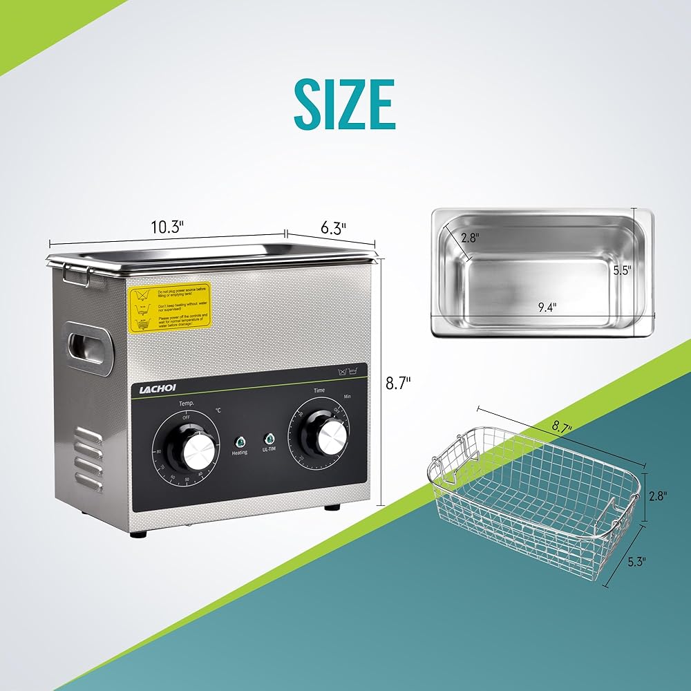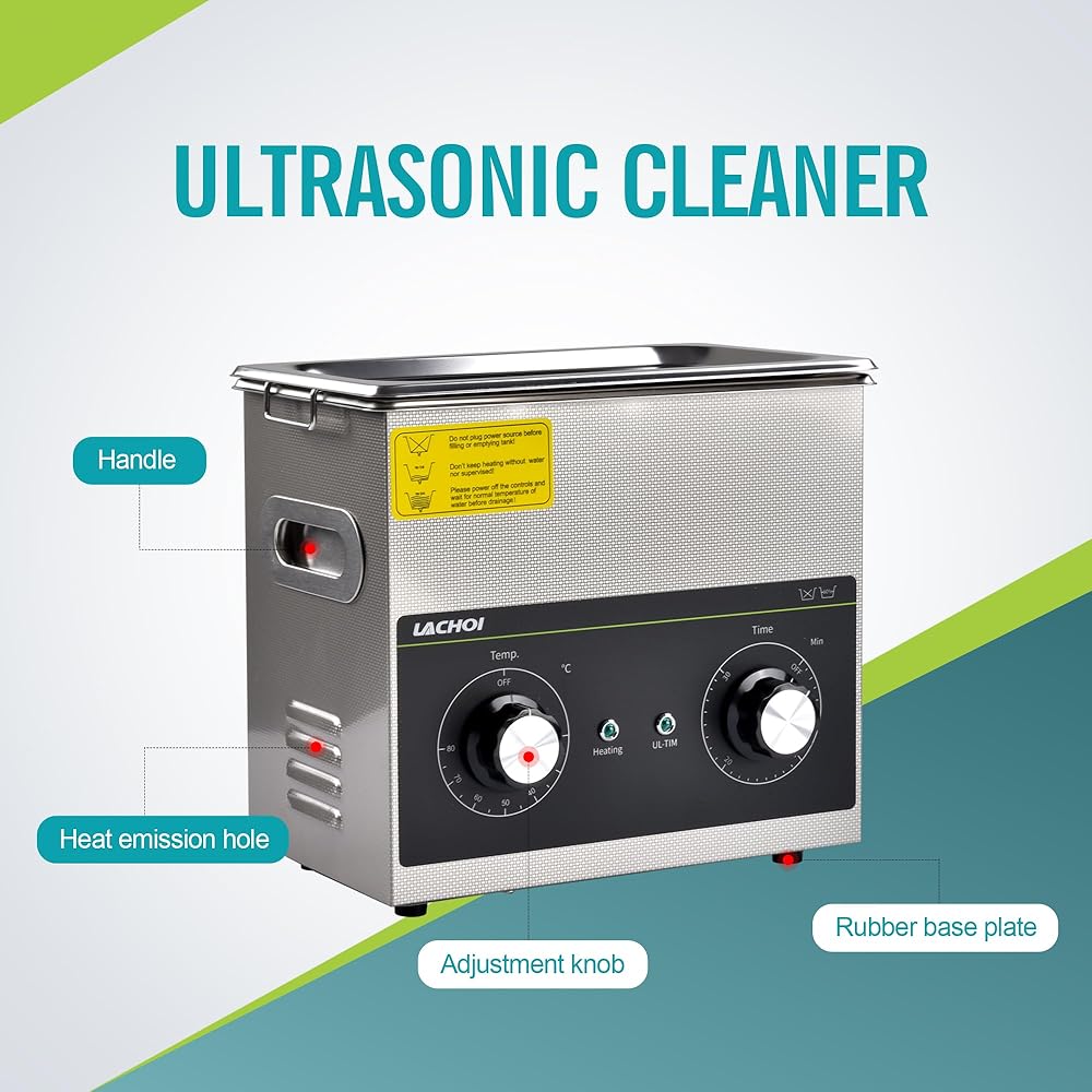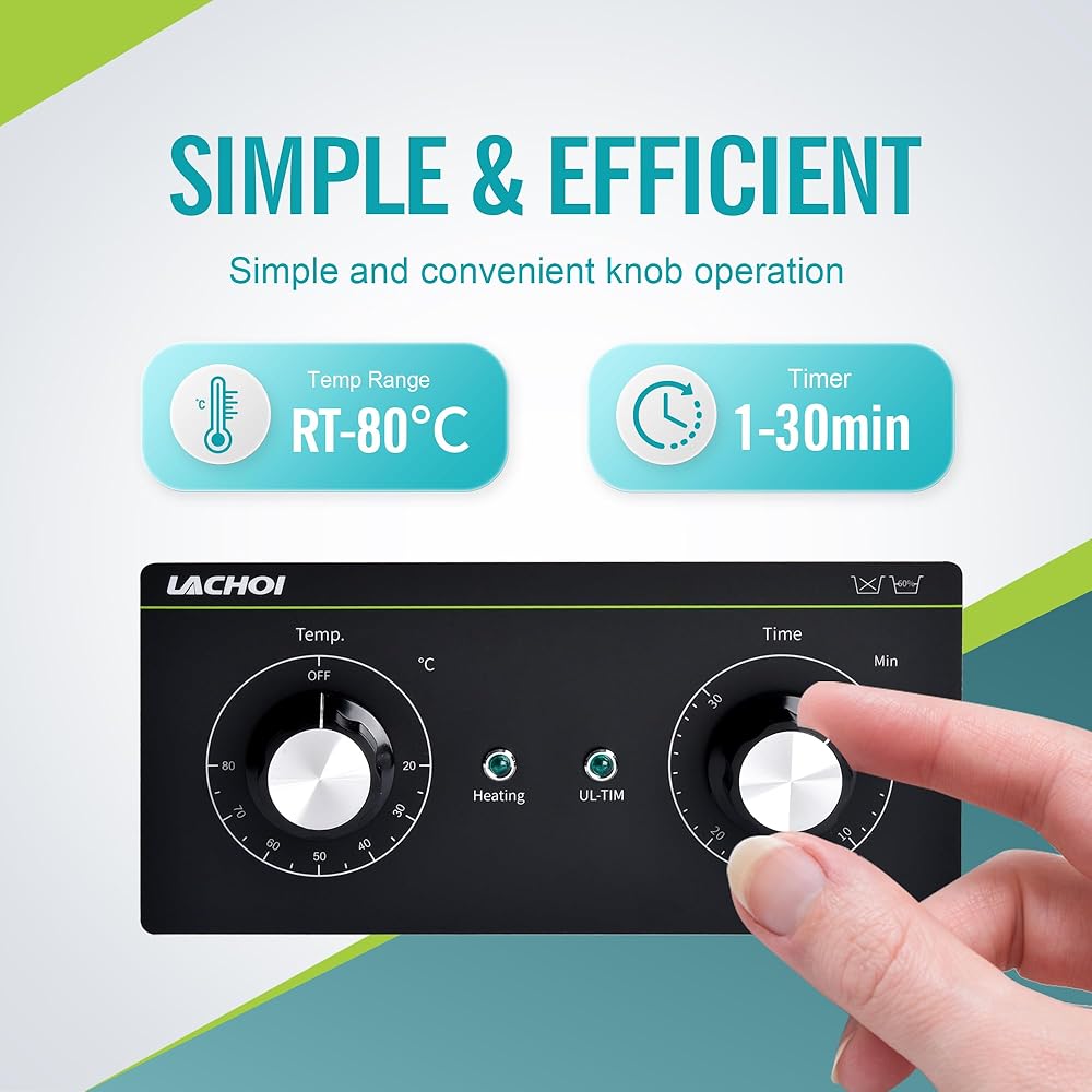 【المؤقت والسخان】مع المقبض الميكانيكي، يمكن للمنظف بالموجات فوق الصوتية ضبط التوقيت من 1 إلى 30 دقيقة ودرجة الحرارة من RT إلى 80 درجة مئوية/176 درجة فهرنهايت.
