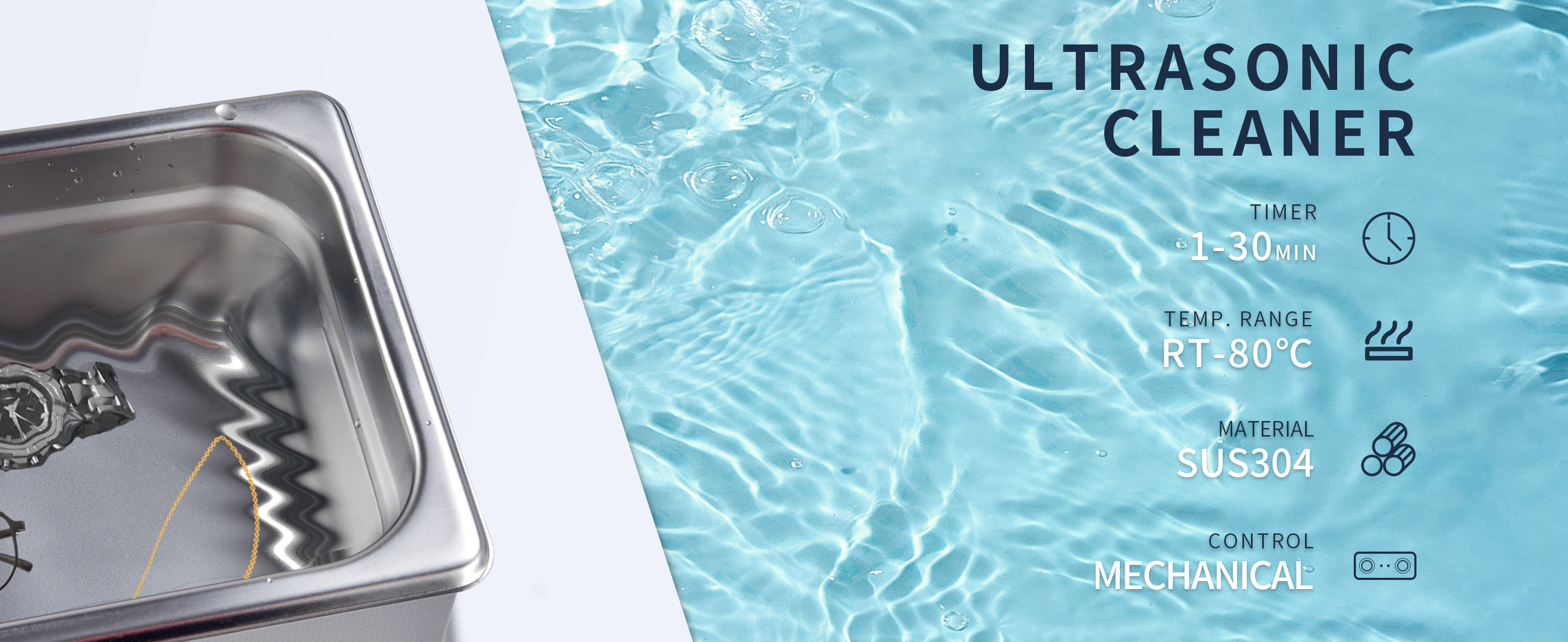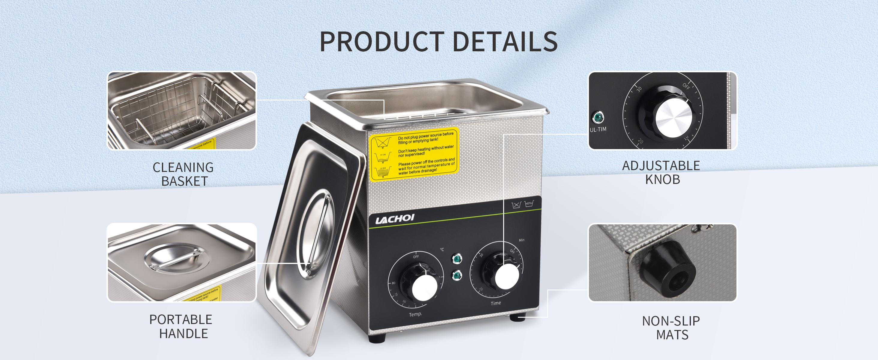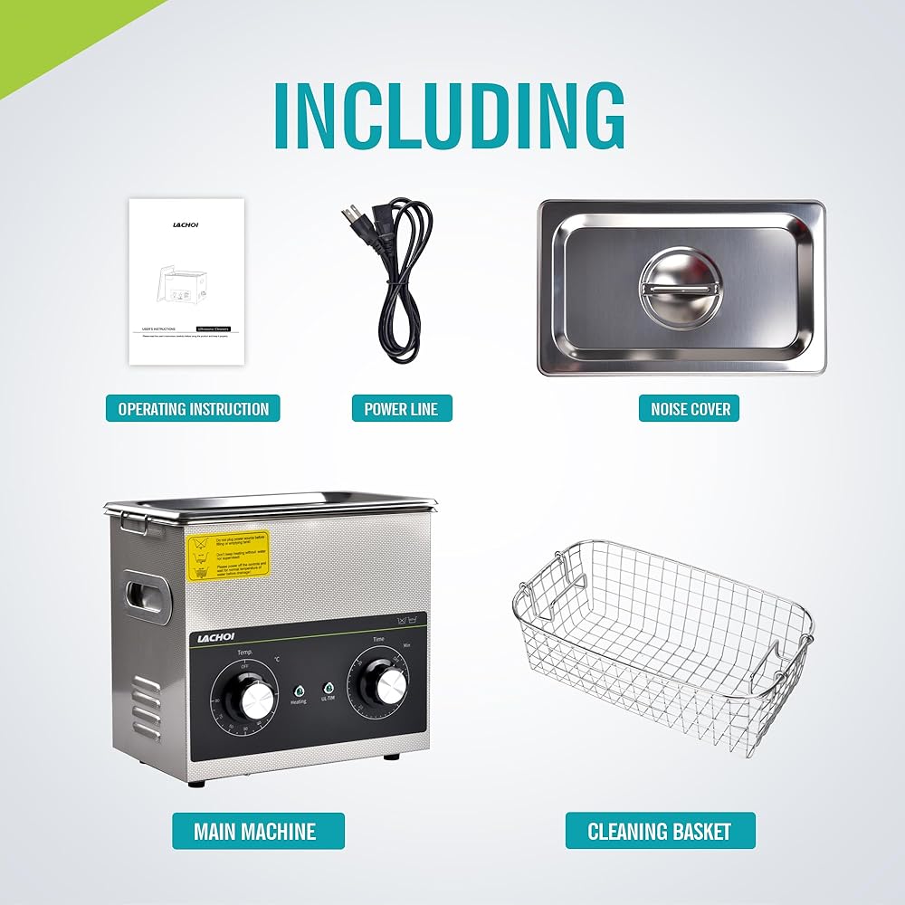 【المؤقت والسخان】مع المقبض الميكانيكي، يمكن للمنظف بالموجات فوق الصوتية ضبط التوقيت من 1 إلى 30 دقيقة ودرجة الحرارة من RT إلى 80 درجة مئوية/176 درجة فهرنهايت.