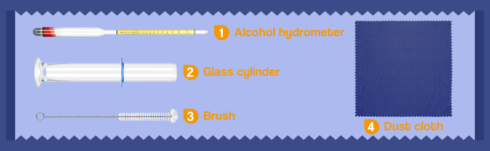 تحتوي العبوة على: تحتوي العبوة على قطعة واحدة من مقياس كثافة الكحول 0-100، وتأتي مع قطعة واحدة من الأسطوانة الزجاجية، وقطعة واحدة من الفرشاة، وقطعة واحدة من قماش الغبار، مزيج لطيف يمكن أن يلبي متطلبات البيرة الخاصة بك
