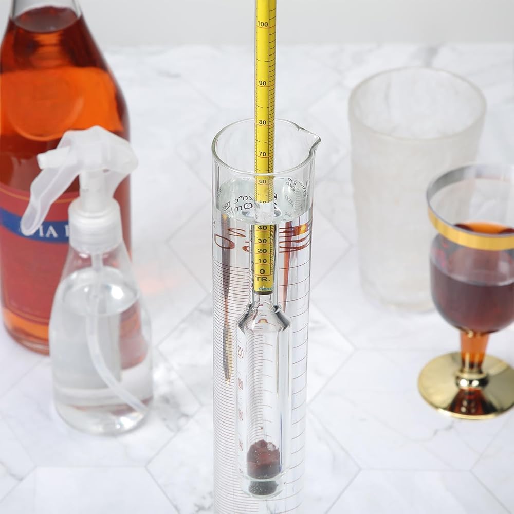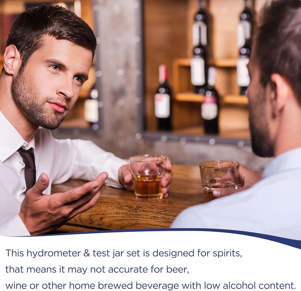 نصائح ودية: تم تصميم مجموعة برطمانات اختبار مقياس الهيدرومتر هذه لمحبي المحتوى العالي من الكحول، وهذا يعني أنها قد لا تكون دقيقة للبيرة أو النبيذ أو غيرها من المشروبات المخمرة في المنزل ذات محتوى منخفض من الكحول.