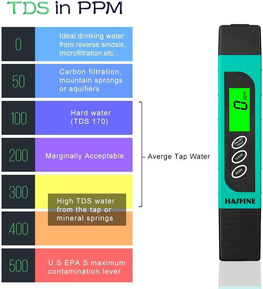 جهاز قياس جودة المياه TDS، مقياس التوصيل الرقمي HASFINE 3 في 1 TDS، EC ومقياس درجة الحرارة، قلم اختبار الدقة 0-9999 جزء في المليون متر لمياه الشرب وأحواض السمك وحمام السباحة والمزيد