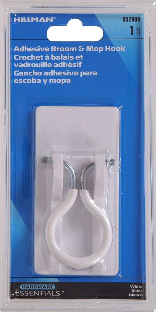 Hardware Essentials Plastic Broom Holders are easy to install. Great for wherever extra hanging help is needed for light weight objects. Plastic Adhesive Hooks are available in different styles, sizes, and finishes and can hold up to 1lb. For a sturdy application, clean wall before adhering to surface. Press plastic hanger on wall for 60 seconds to install.