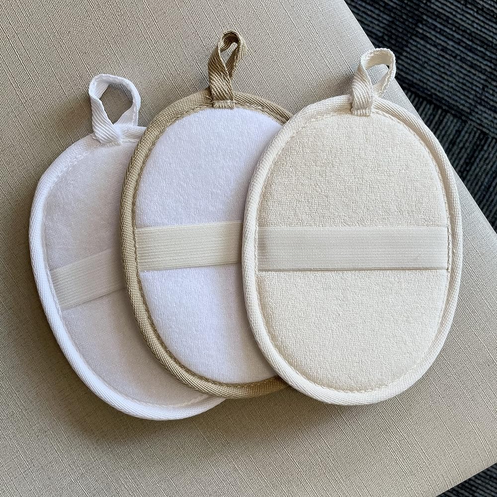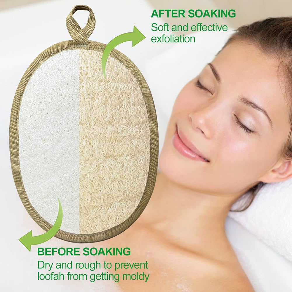 لوفا عالية الجودة - يستخدم أحد الجانبين إسفنجة ليفة طبيعية لتقشير الجلد، بينما يستخدم الجانب الآخر قطعة قماش ناعمة لتحصل على نظافة كاملة. تحتوي كل وسادة على شريط حافة مضاد للتآكل حولها لمنع تشوه الوسادة أو تمزقها بعد الاستخدام لفترة طويلة