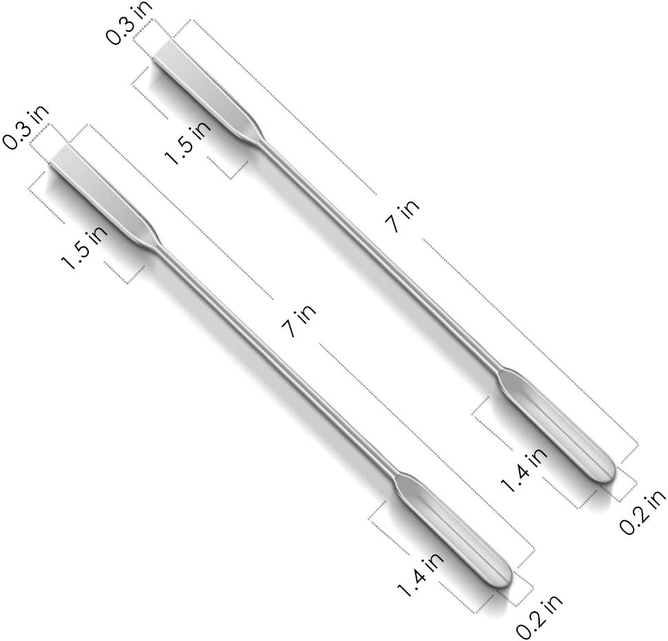 2-In-1 Design: One head is spatula and one head is scoop or spoon. Convenient to retrieve powders and mix ingredients together in deep container
