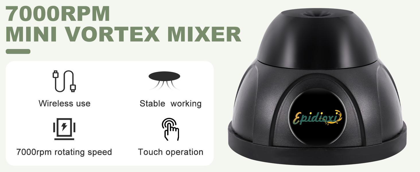 【اهتزاز سريع】 محرك بتيار مستمر بدون فرش يوفر قوة قوية للخلاط. سرعة تصل إلى 7000 دورة في الدقيقة، يمكنها خلط حاويات سعة 50 مل بالكامل في عدة ثوانٍ، مما يوفر الجهد والوقت.